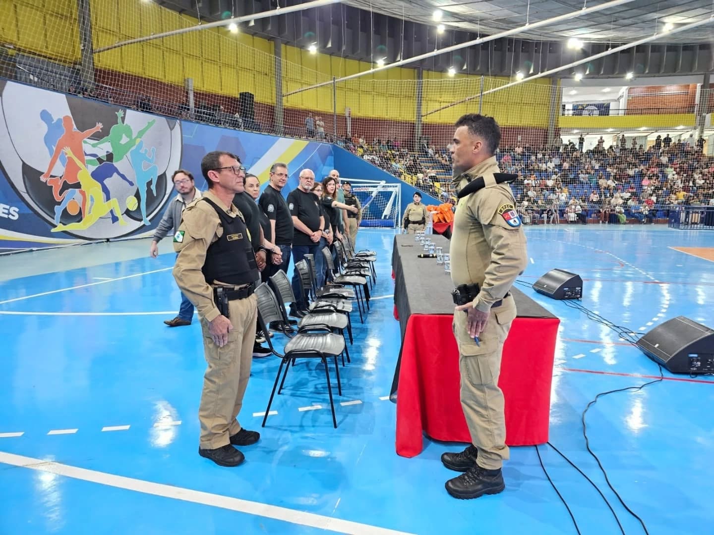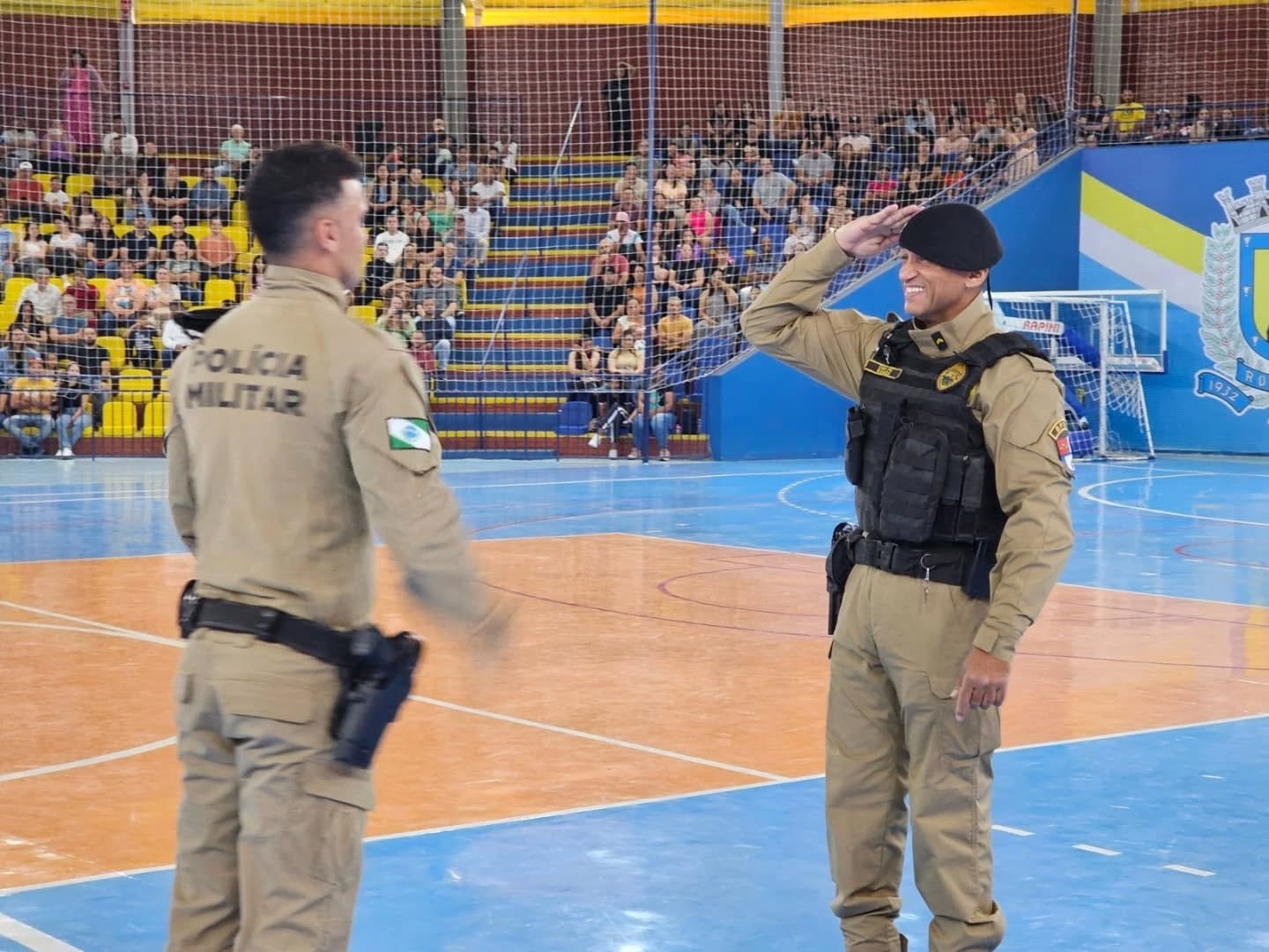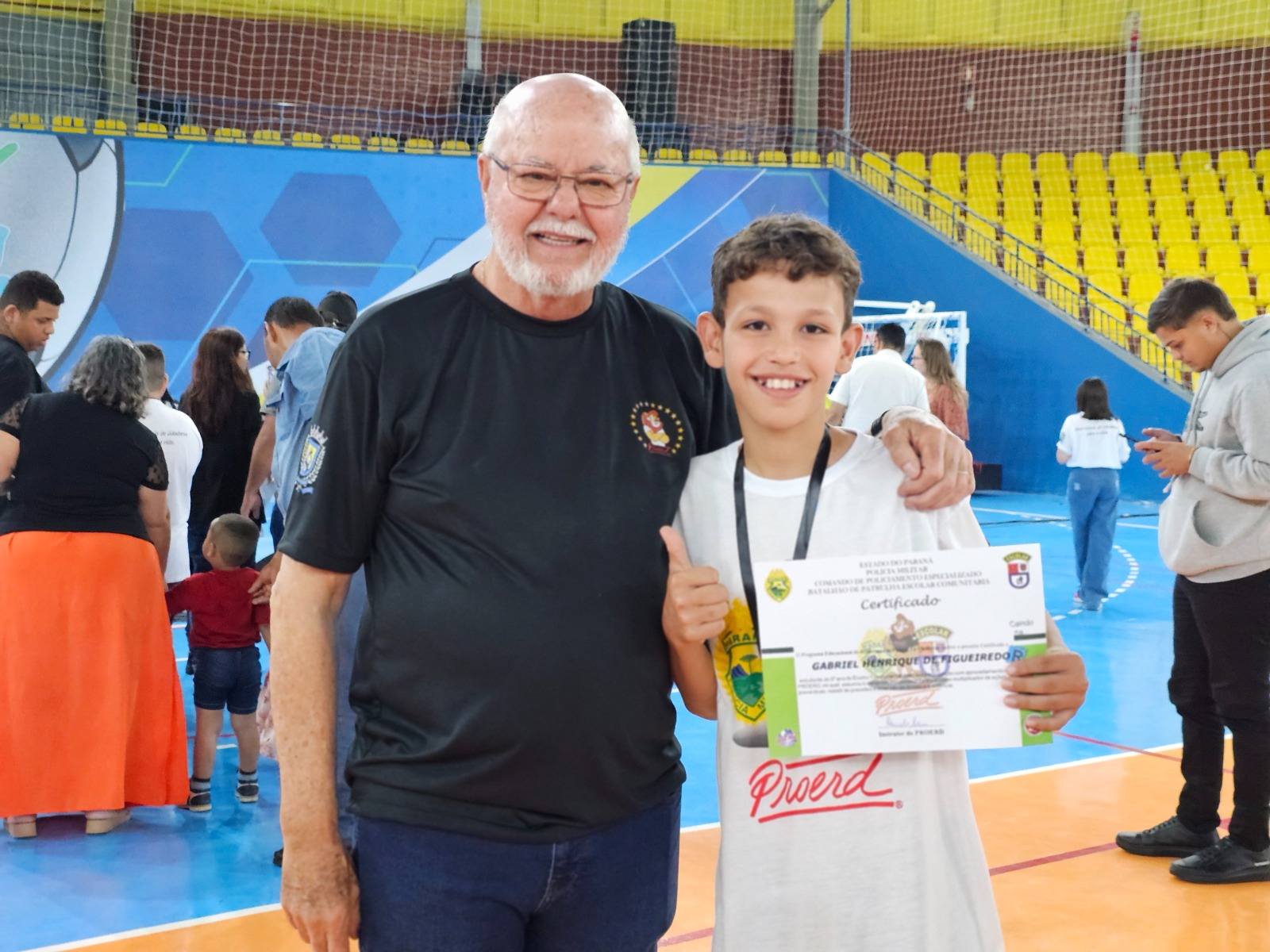 Fechando mais ciclo de curso para os alunos da rede municipal de ensino, chegou ao fim a etapa do Programa Educacional de Resistência às Drogas e à Violência (Proerd). E mais 458 alunos da rede municipal de Educação se formaram. A ação é uma parceria da Prefeitura de Rolândia, por meio da secretaria da Educação, com a Polícia Militar do Paraná, via Batalhão da Patrulha Escolar Comunitária (BPEC). As aulas foram ministradas pela sargento Silvia e pelos cabos R. Mendes e Ramos. A solenidade aconteceu na noite desta quarta-feira, dia 27, no Ginásio Emílio Gomes, centro, e foi conduzida pela soldado Aline França.