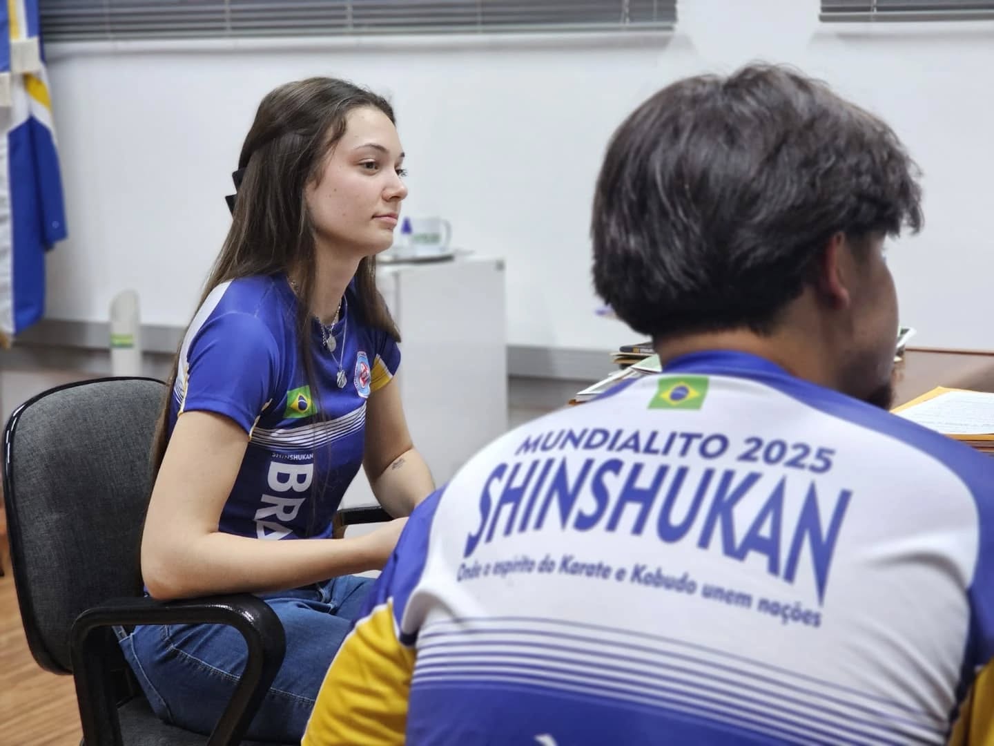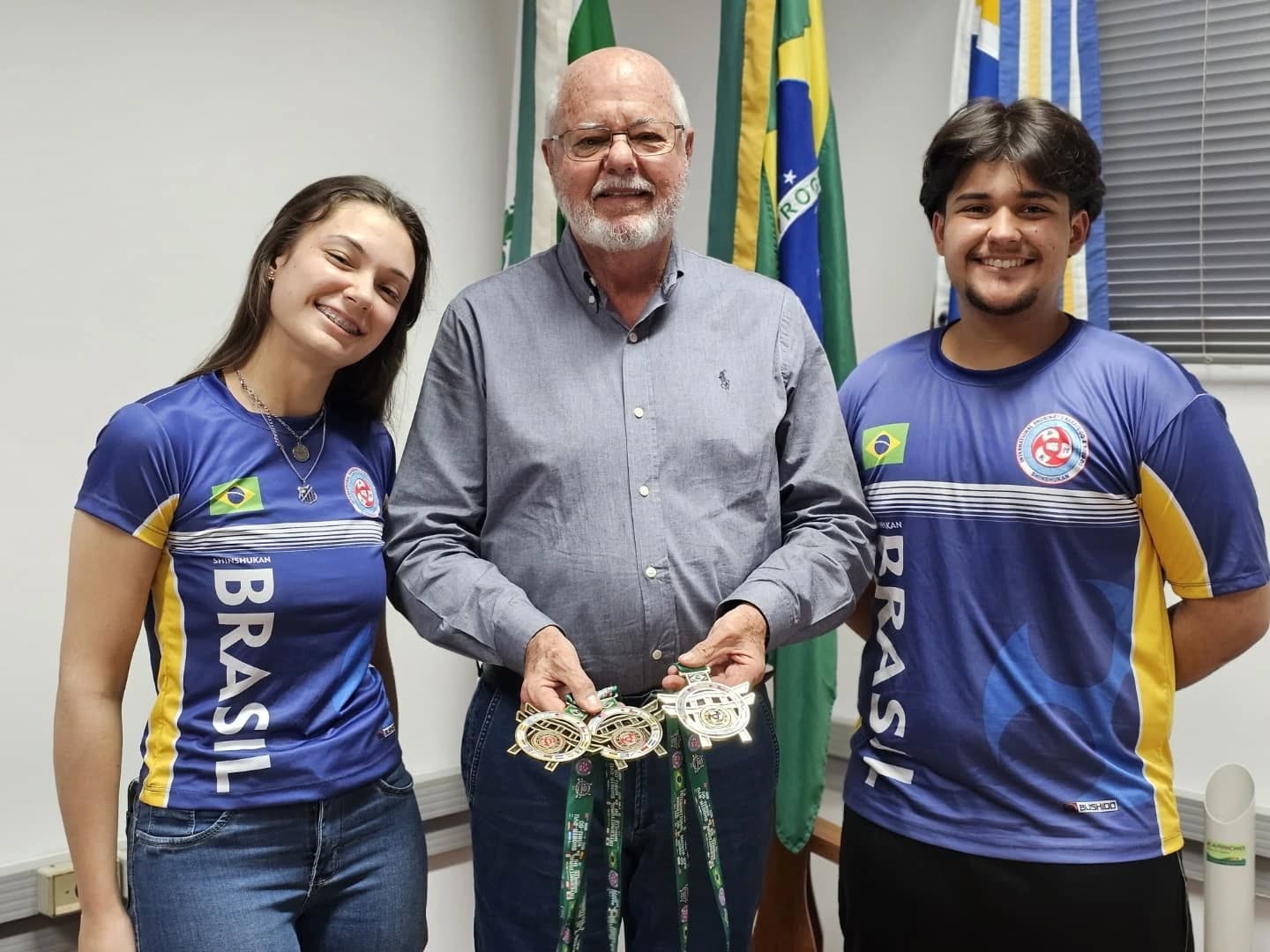 Nesta sexta-feira, dia 29 de agosto, o prefeito Ailton Maistro recebeu em seu gabinete a visita dos atletas Ana Camili Irmer e João Irmer, além de Valdir Irmer, pai dos karatecas.