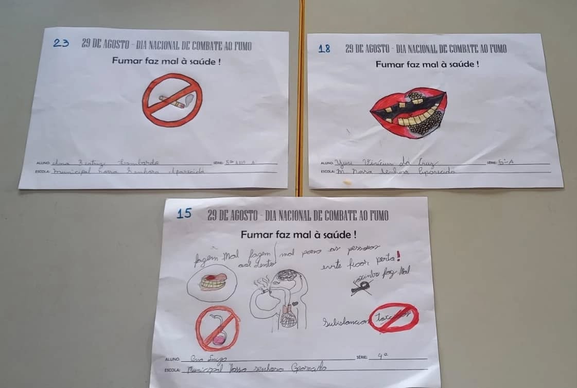 As secretarias de Saúde e de Educação informa que nesta sexta-feira, dia 29/08, a equipe de saúde da UBS Bartira realizou uma ação do Programa Saúde na Escola (PSE) na Escola Nossa Senhora Aparecida, no distrito do Bartira, com atividades educativas sobre o combate ao tabagismo: