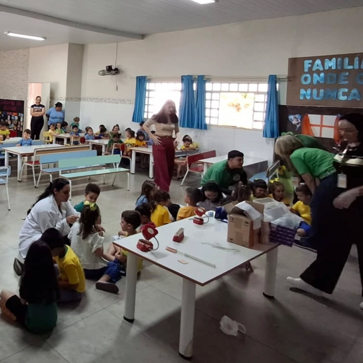 A secretaria de Saúde promoveu uma ação de saúde bucal no Centro de Educação Infantil (CEI) João Leão Pitta, na Vila Oliveira.