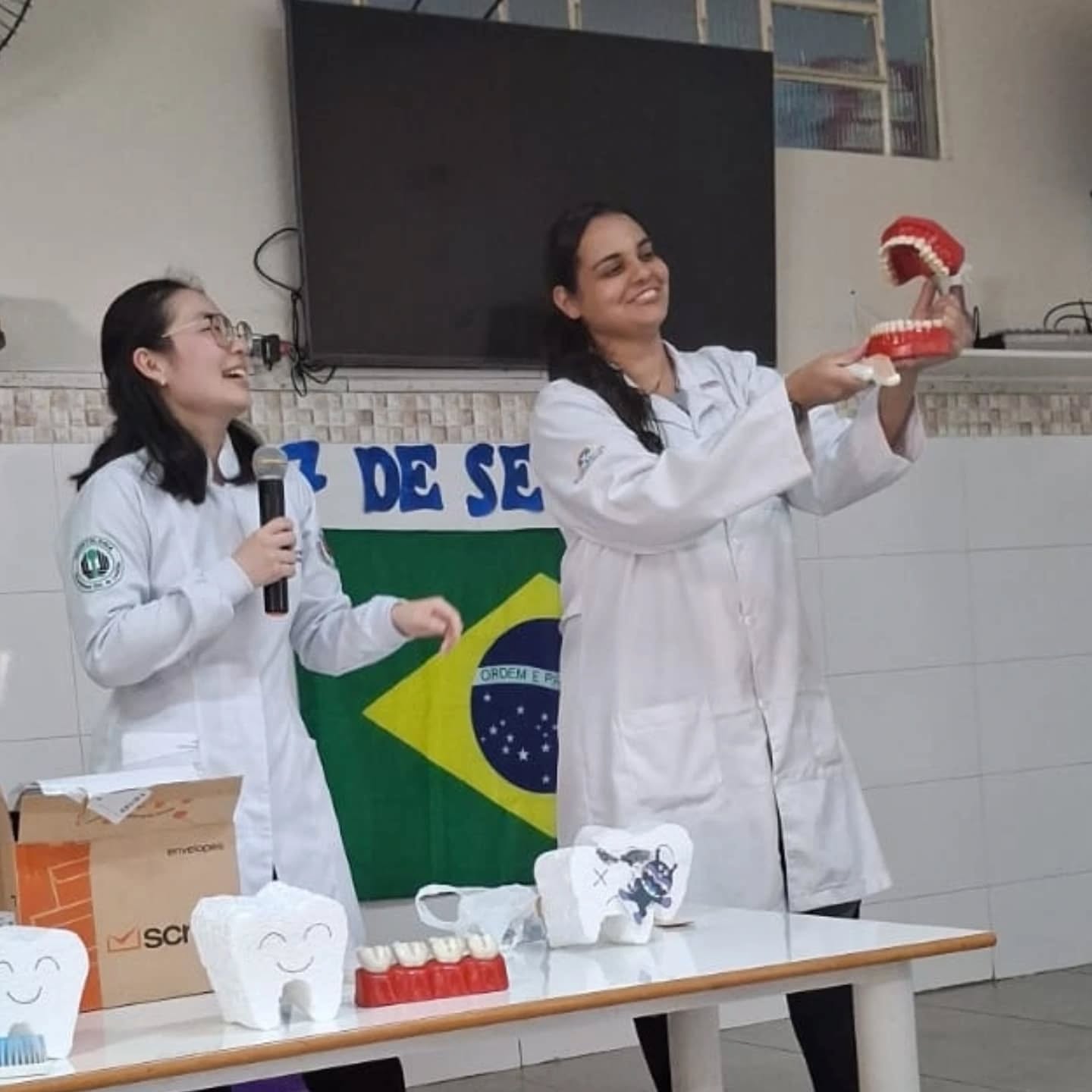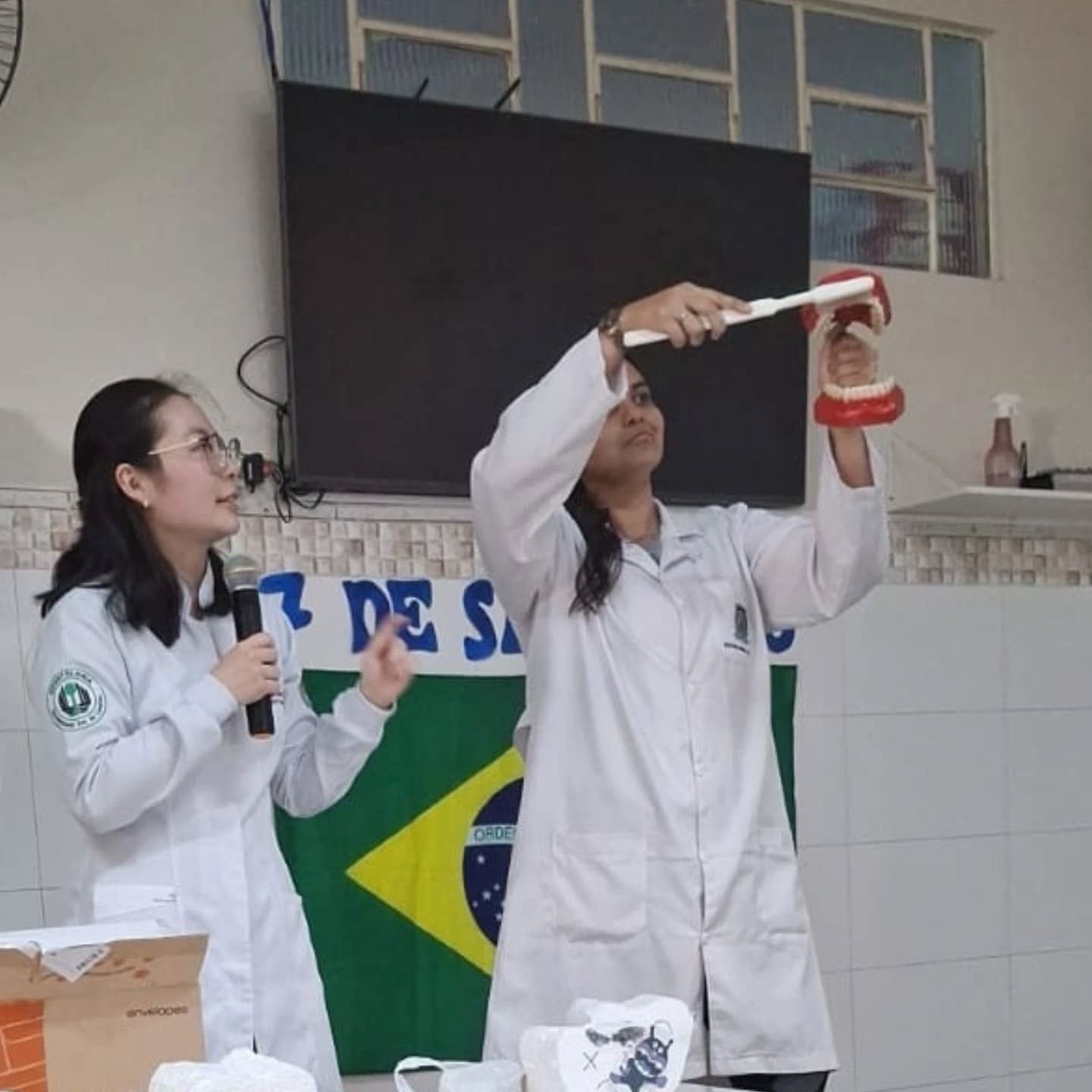 A ação levou orientações sobre higiene bucal e a importância da escovação e de passar fio dental aos alunos e para toda comunidade escolar.