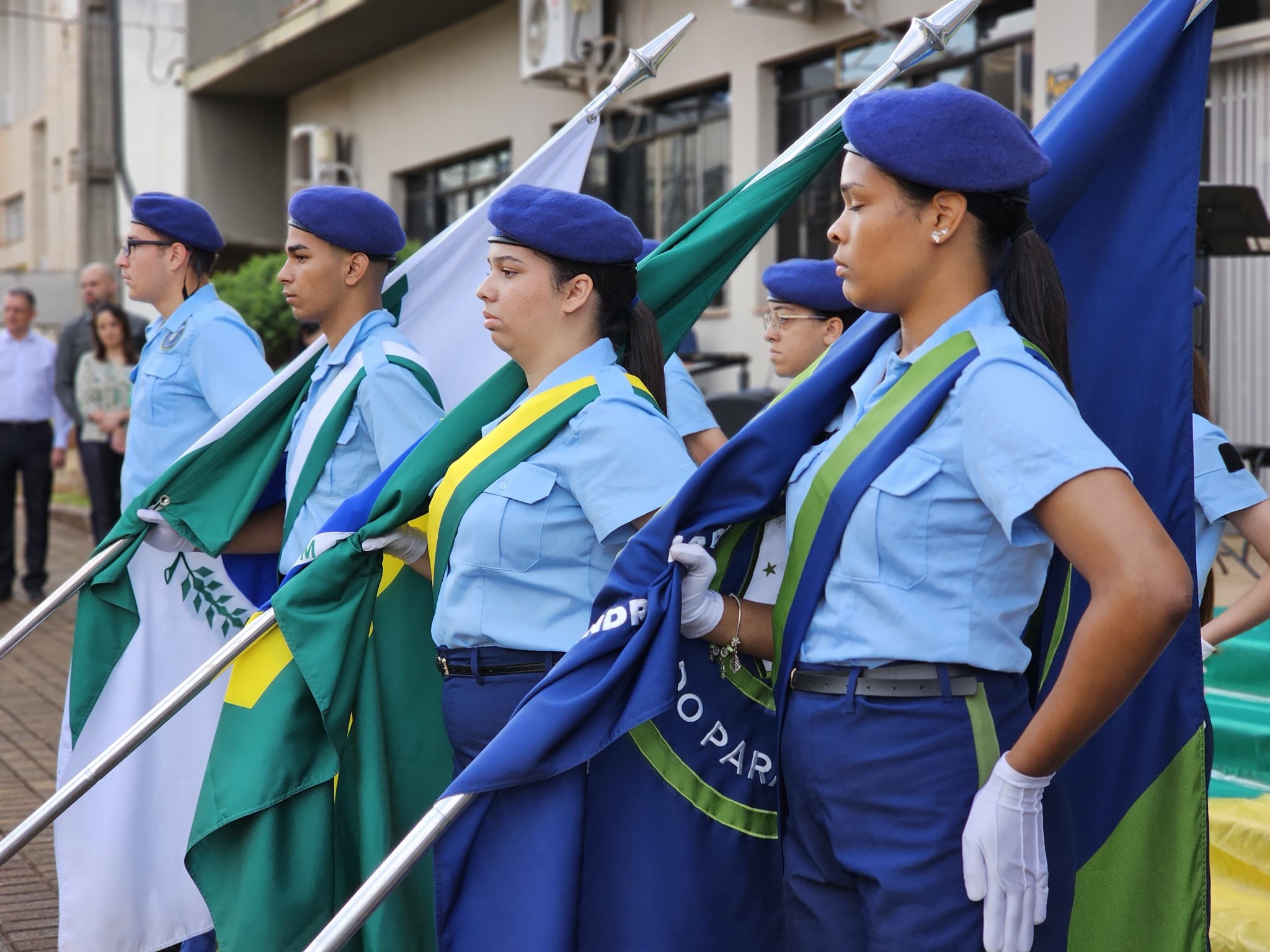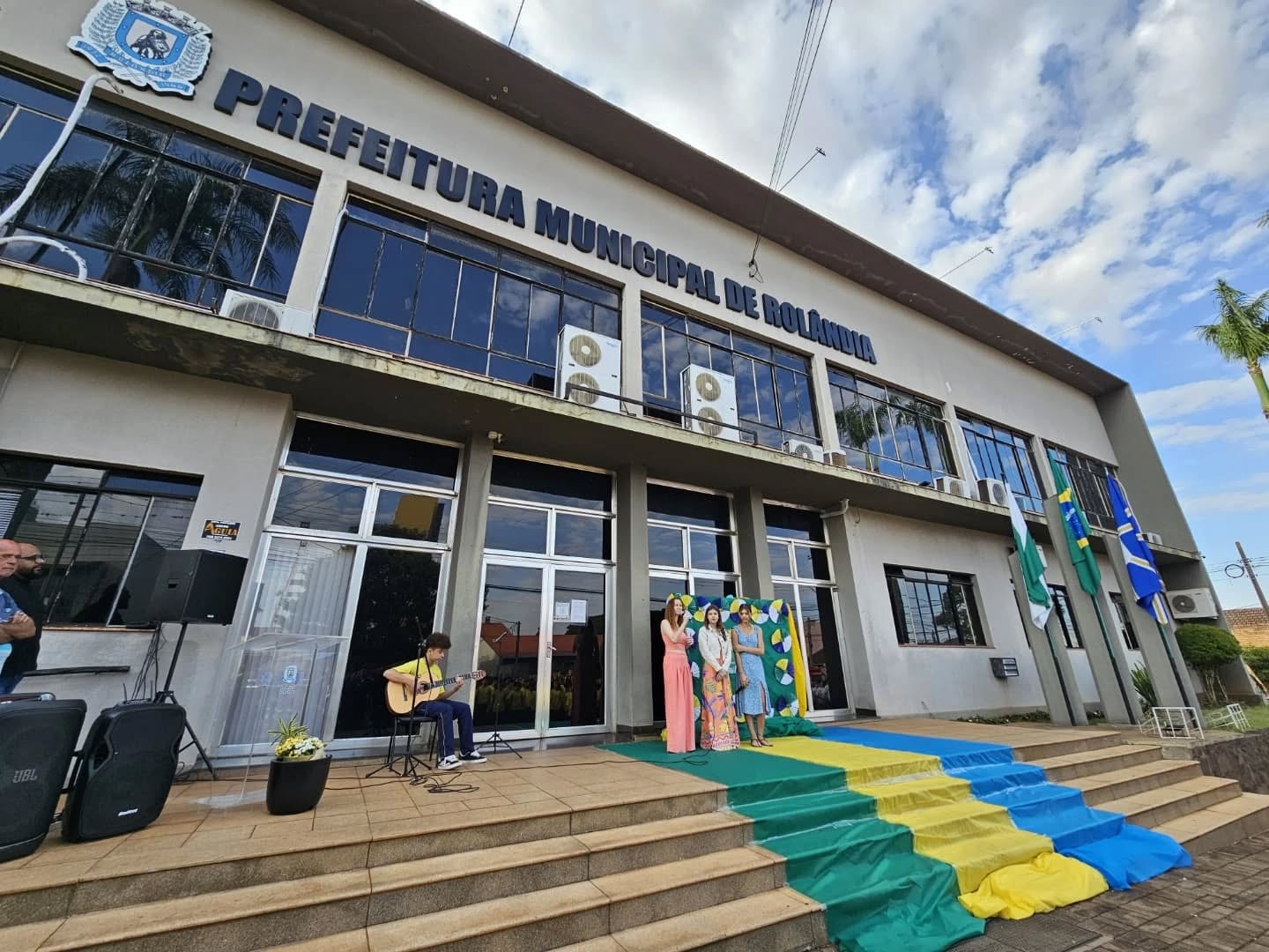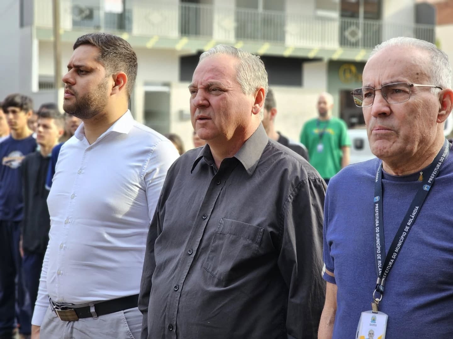 Nesta sexta-feira, dia 5, teve momento cívico, com hasteamento das bandeiras e execução dos hinos do Brasil, do Paraná e de Rolândia.