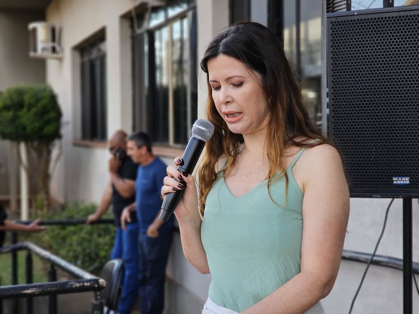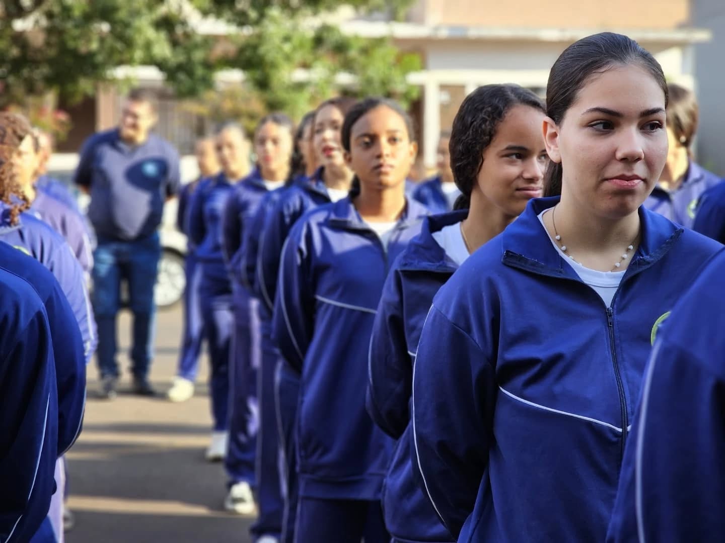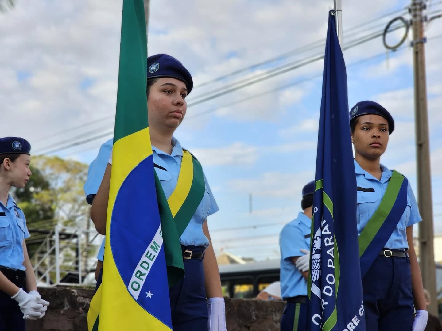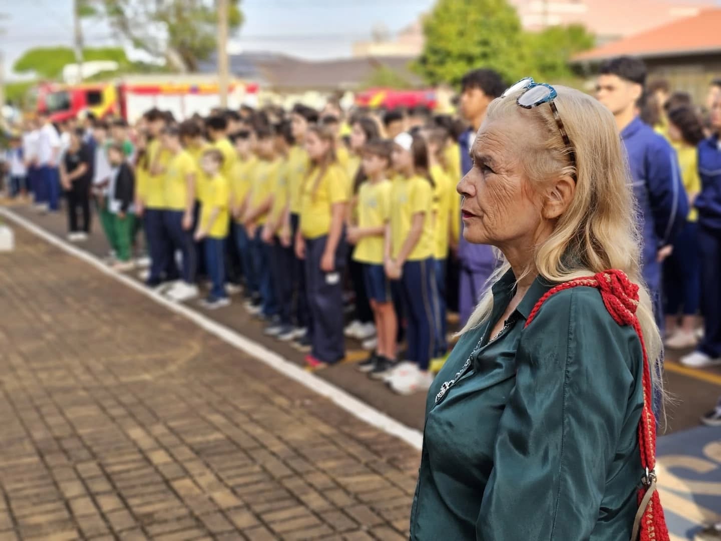 Nesta sexta-feira, dia 5, teve momento cívico, com hasteamento das bandeiras e execução dos hinos do Brasil, do Paraná e de Rolândia.