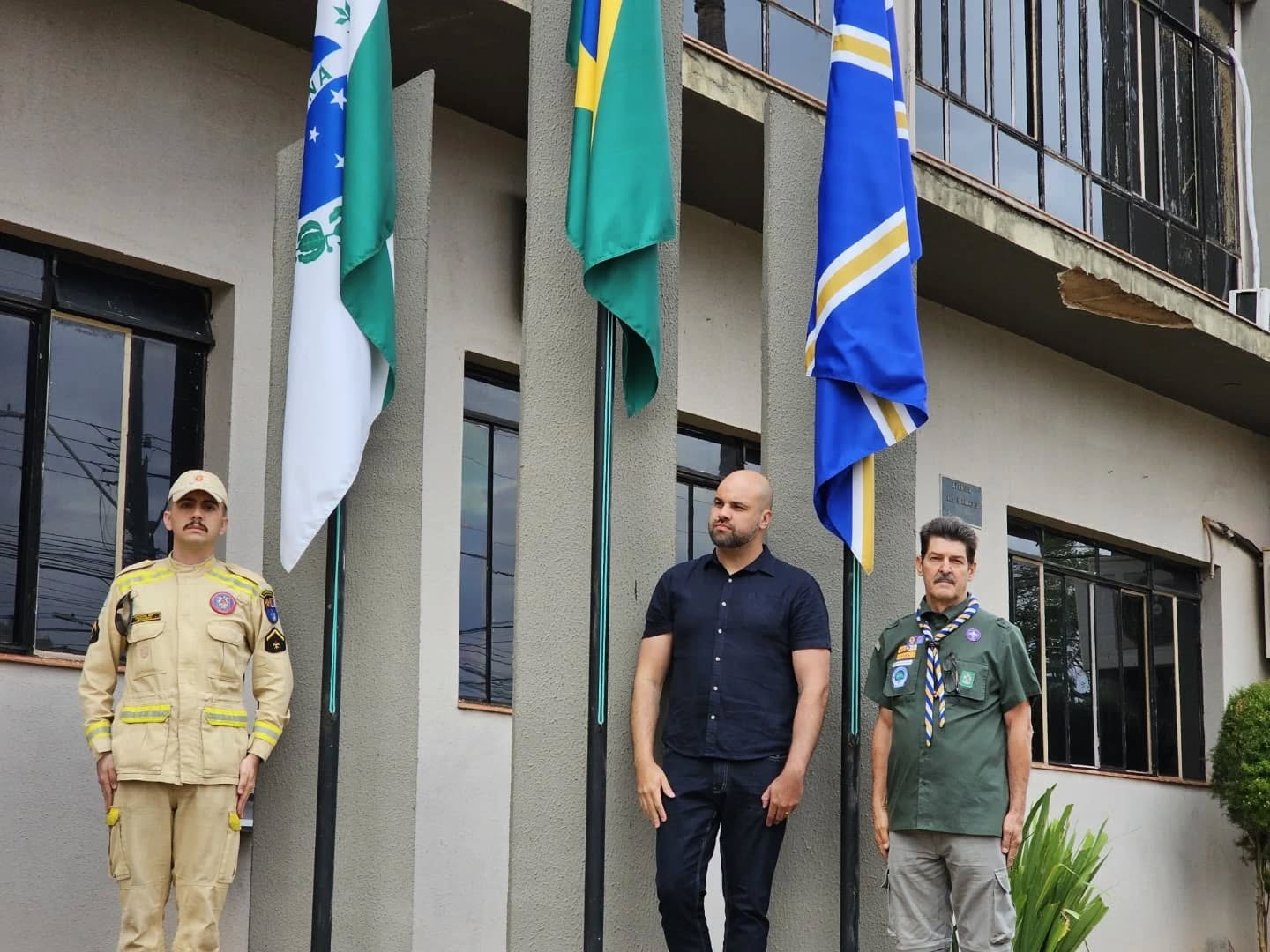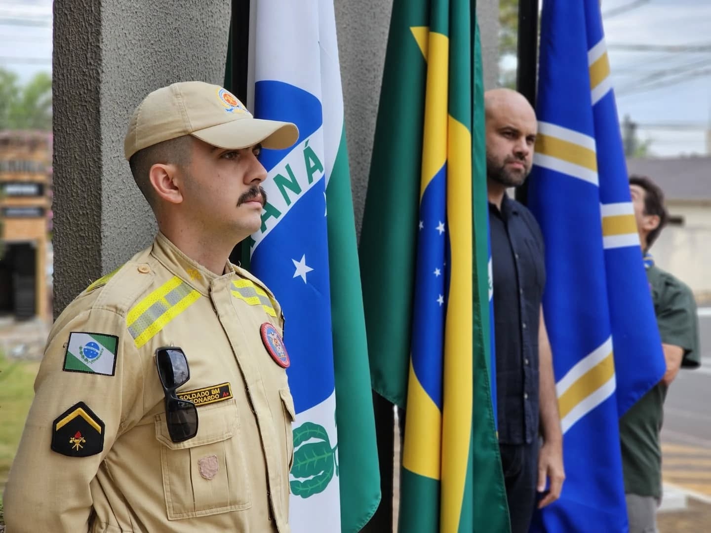 Neste sábado, dia 6, teve momento cívico, com hasteamento das bandeiras e execução dos hinos do Brasil, do Paraná e de Rolândia.