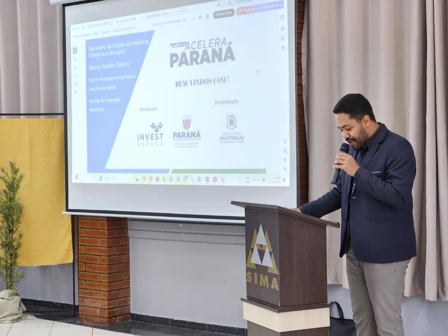 Nesta quinta-feira, dia 11 de setembro, a cidade de Arapongas recebeu uma reunião de apresentação do programa “Acelera Paraná”, em ato que aconteceu na sede campestre do Sindicato das Indústrias de Móveis de Arapongas.