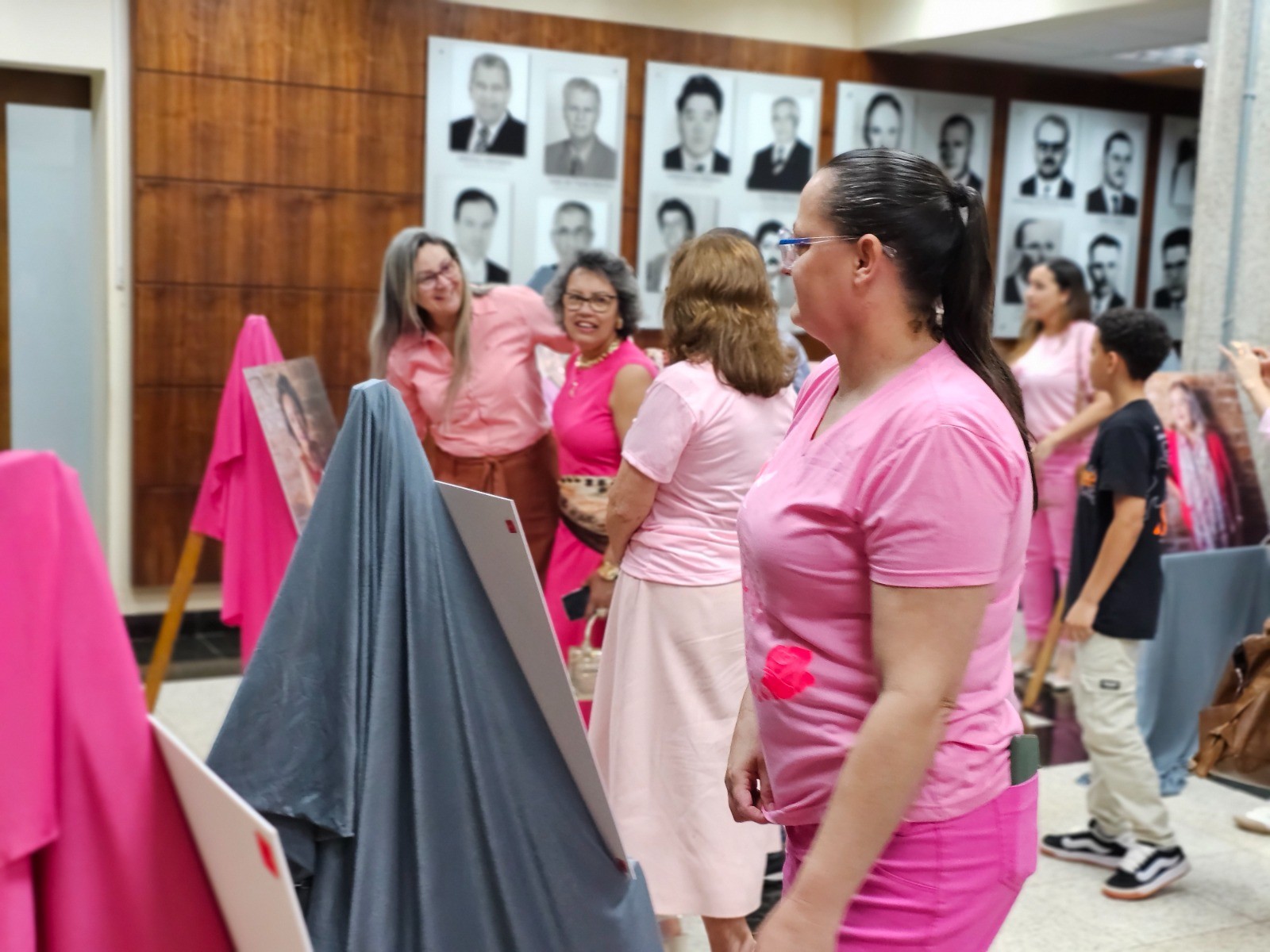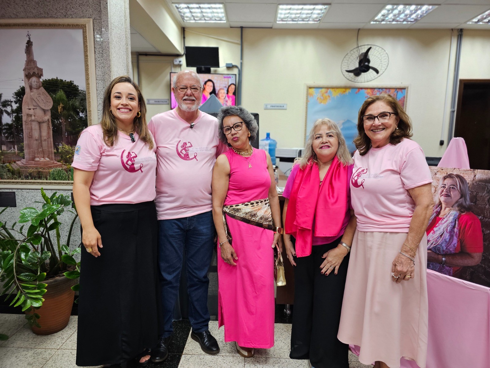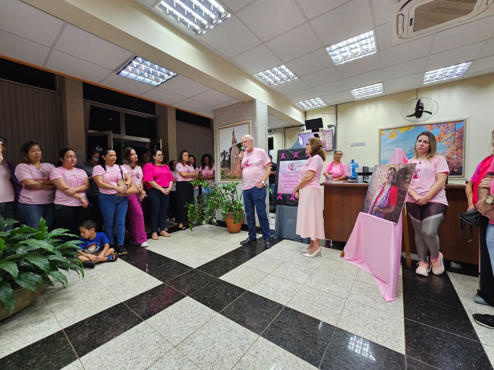 Em seguida, o público foi convidado a visitar uma exposição, que ficará ao longo do mês, no saguão da Prefeitura, com fotos com quatro mulheres que venceram o câncer de mama.