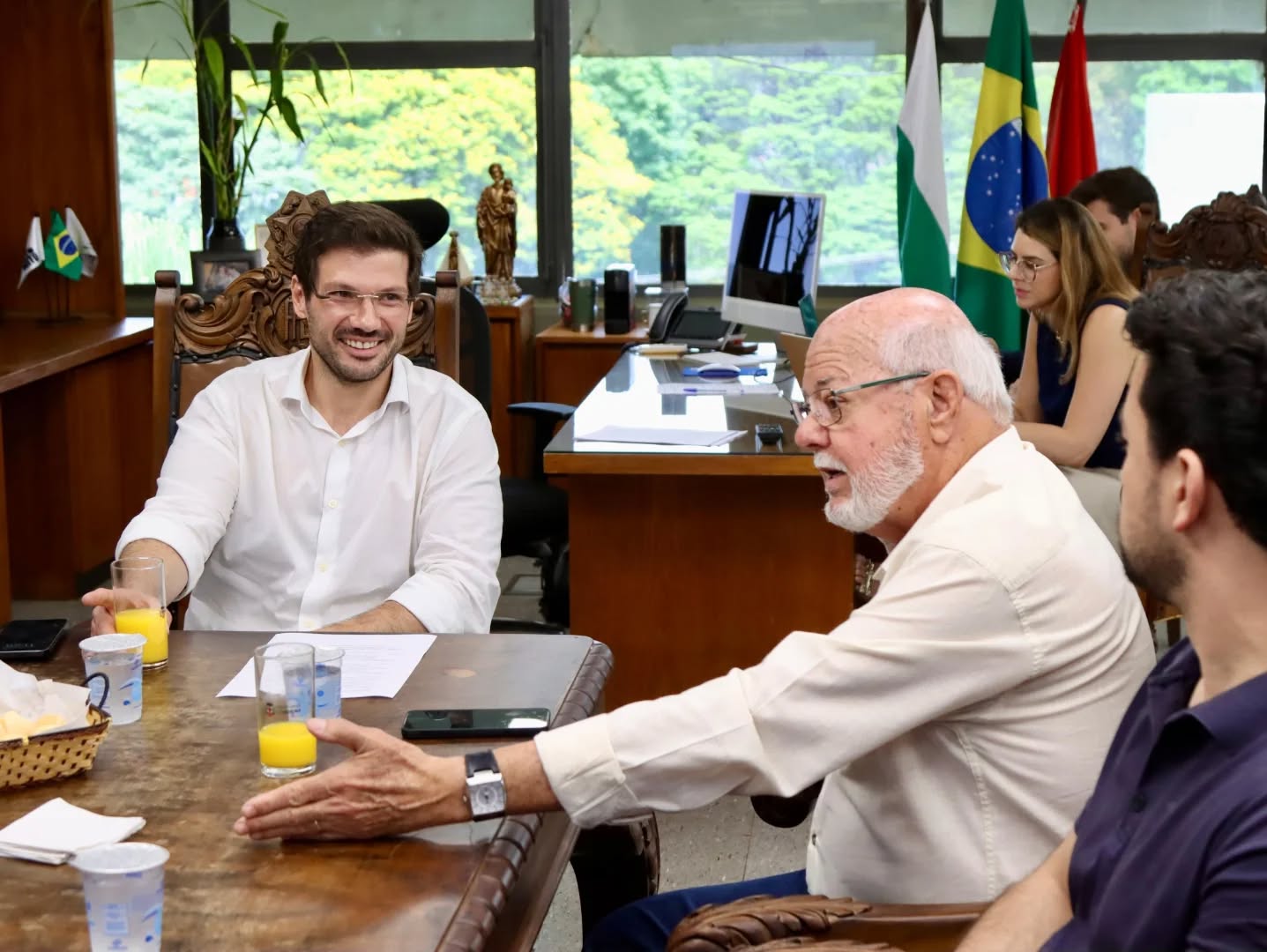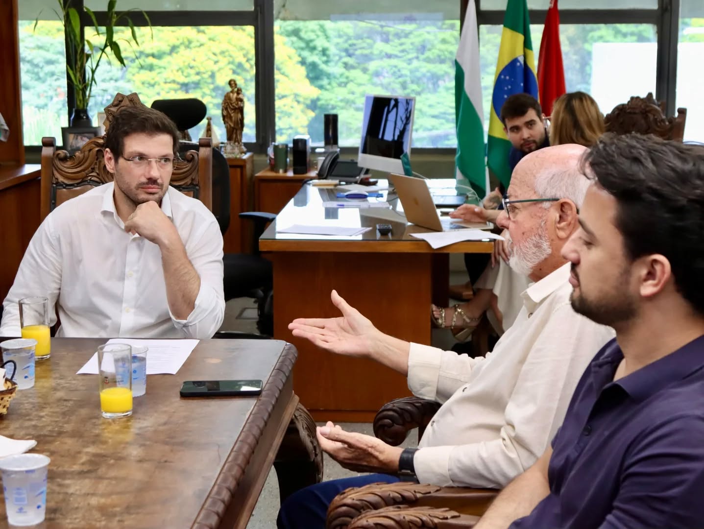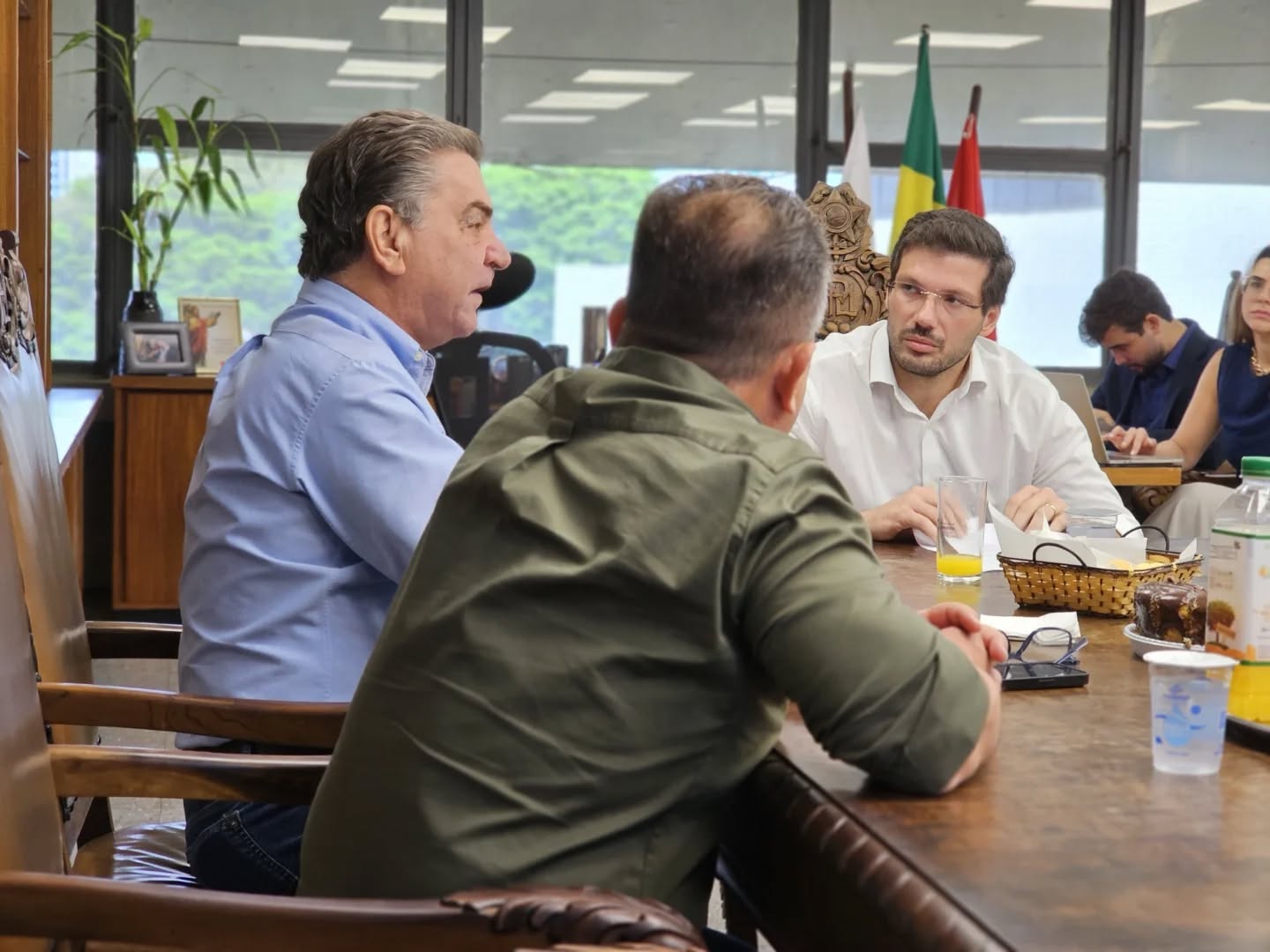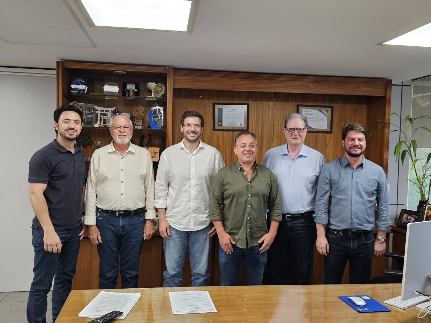 Nesta quarta-feira, dia 1° de outubro, no gabinete do prefeito de Londrina, Tiago Amaral, os prefeitos de Londrina e ainda Rolândia, Ailton Maistro; Cambé, Conrado Scheller; Ibiporã, José Maria Ferreira; Arapongas, Rafael Cita; e Apucarana, Rodolfo Mota se reuniram para dar continuidade aos debates do G6, grupo de seis prefeitos desses seis municípios do Norte do Paraná.
