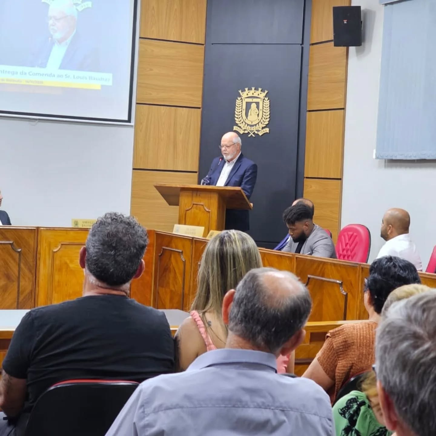 Nesta quinta-feira, dia 16 de outubro, a Câmara Municipal ficou lotada para a entrega de titulação a Louis Baudraz, proposta pelo vereador Andrezinho da Farmácia.