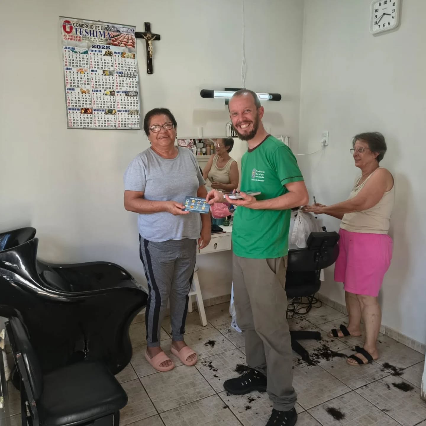 Durante a manhã, os Agentes de Combate a Endemias (ACE) estiveram nas ruas do município realizando panfletagem no comércio local e orientações à população sobre medidas preventivas contra o mosquito Aedes aegypti.