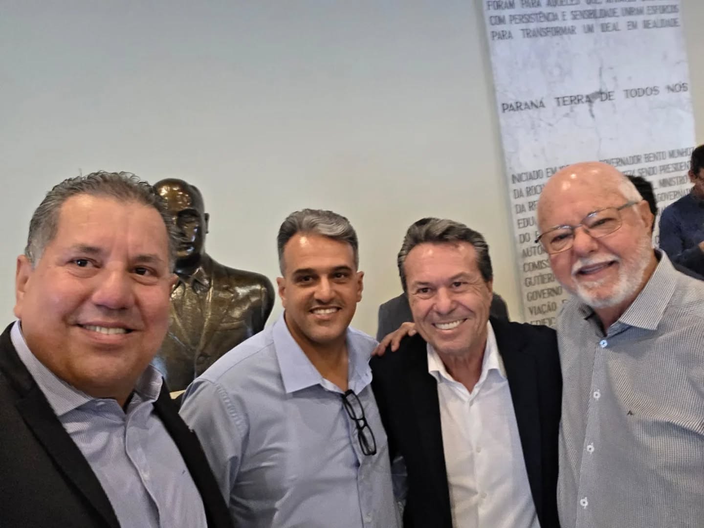 Maistro e Masson, com o apoio do deputado estadual Cobra Repórter, por meio do chefe de Gabinete, Ademar Ramos, aproveitam a oportunidade e tiveram bons encontros com o governador Ratinho Júnior, com o vice-governador, Darci Piana, com o secretário da Agricultura e do Abastecimento, Márcio Nunes, o secretário das Cidades, Guto Silva; o secretário da Saúde, Beto Preto; o presidente da Assembleia Legislativa do Paraná, deputado estadual Alexandre Curi; e com outras autoridades.