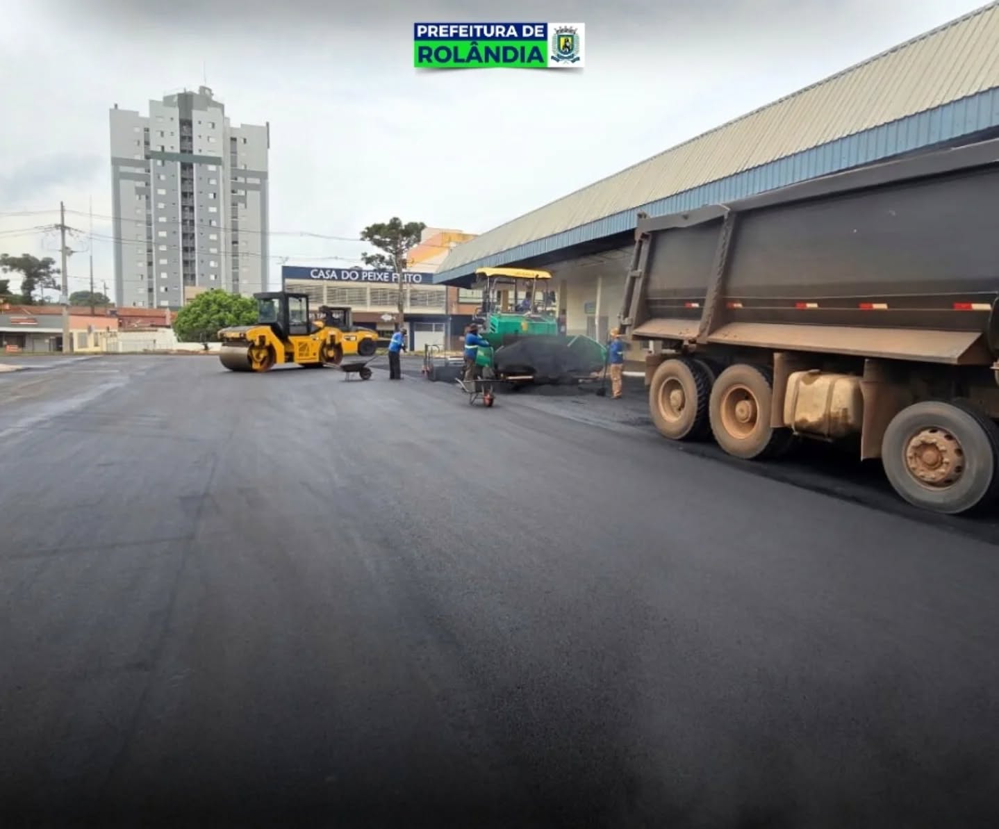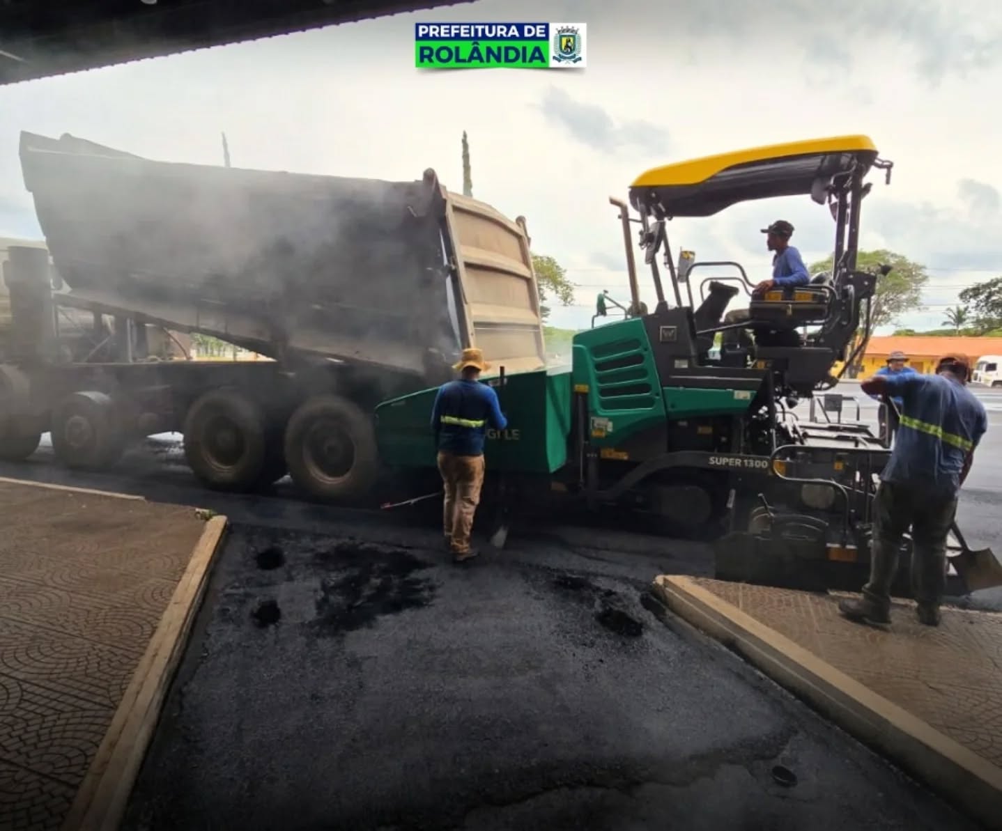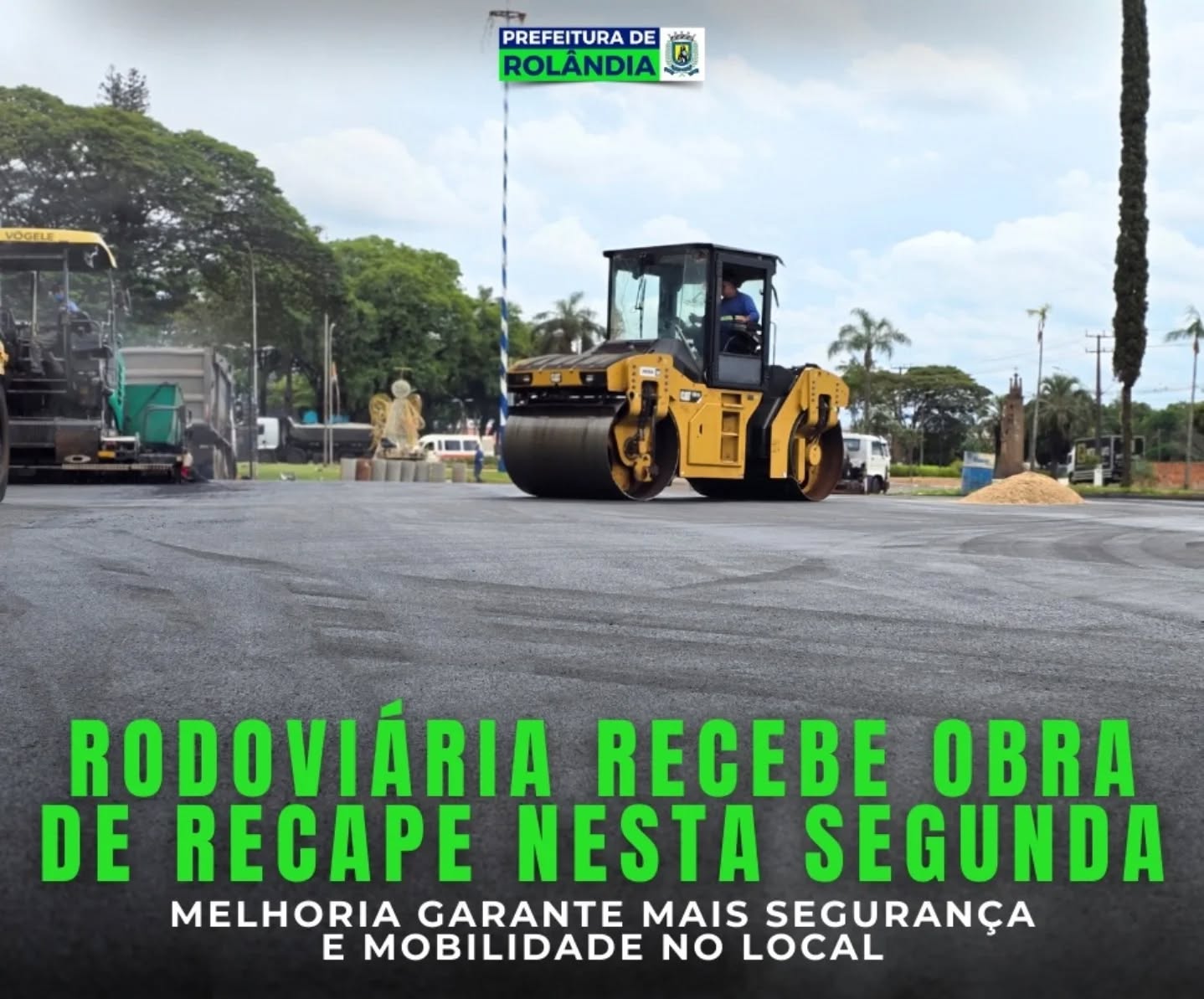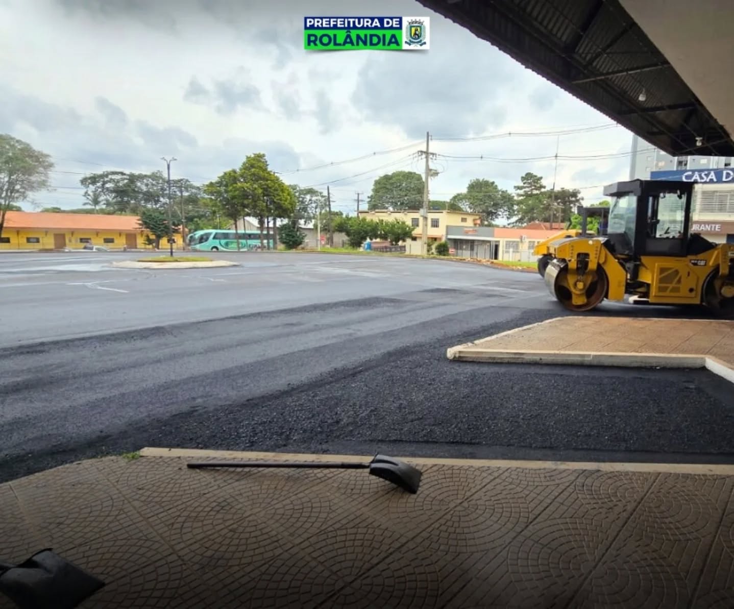 Para proporcionar mais segurança, agilidade e mobilidade, a Rodoviária de Rolândia recebe recape asfáltico nos pontos de embarque e desembarque dos passageiros.