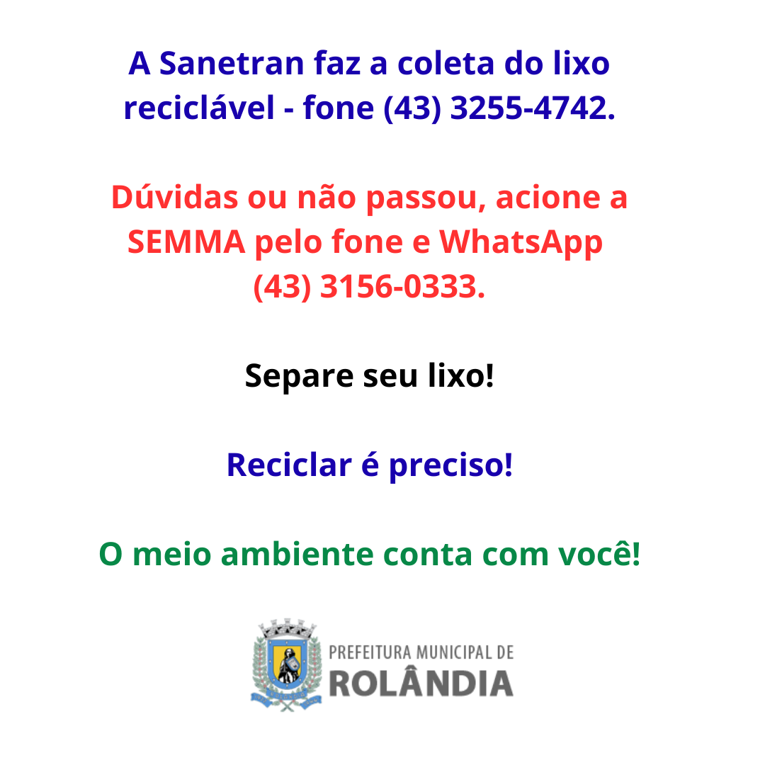 A Sanetran faz a coleta do lixo reciclável - fone (43) 3255-4742.