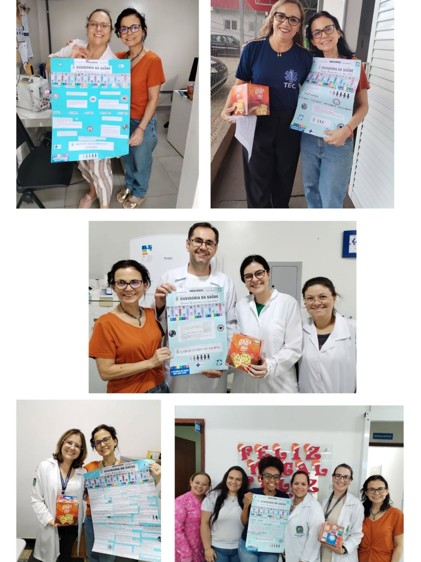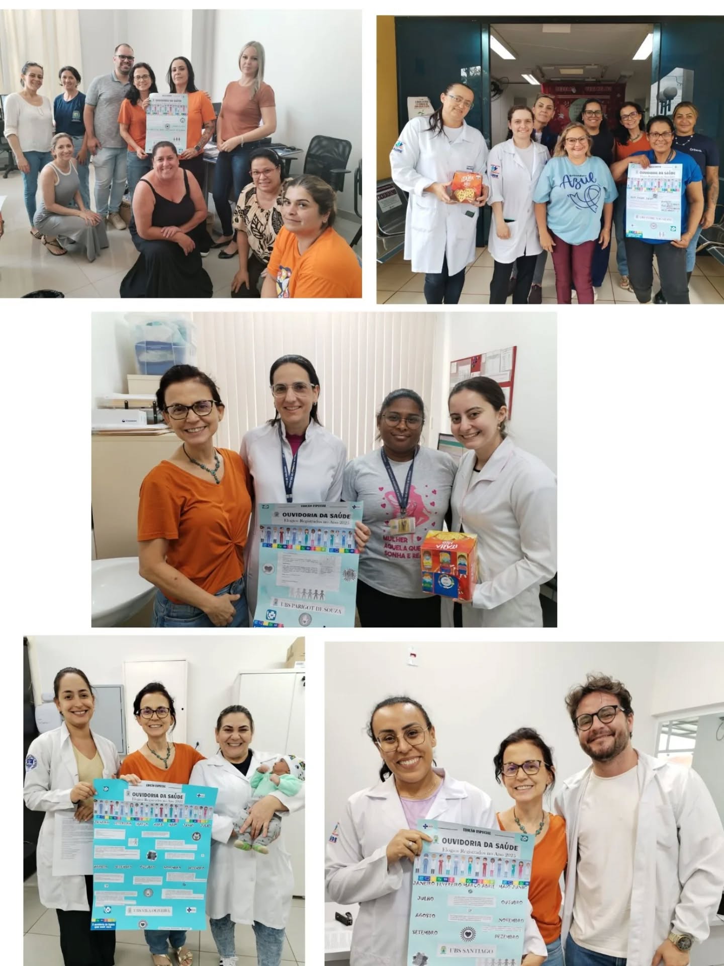 Como forma de valorização e agradecimento, a Ouvidoria promoveu a entrega de um cartaz contendo os elogios recebidos, além de um mimo simbólico, a todas as unidades e serviços que foram reconhecidos pela população: UBS Tomie Nagatani, UBS Parigot, UBS Vila Oliveira, UBS Santiago, UBS Central, UBS Planalto, TEC, PA, Laboratório, CEO, Centro de Especialidades, Setor de Agendamento e Central de Guias e Almoxarifado.