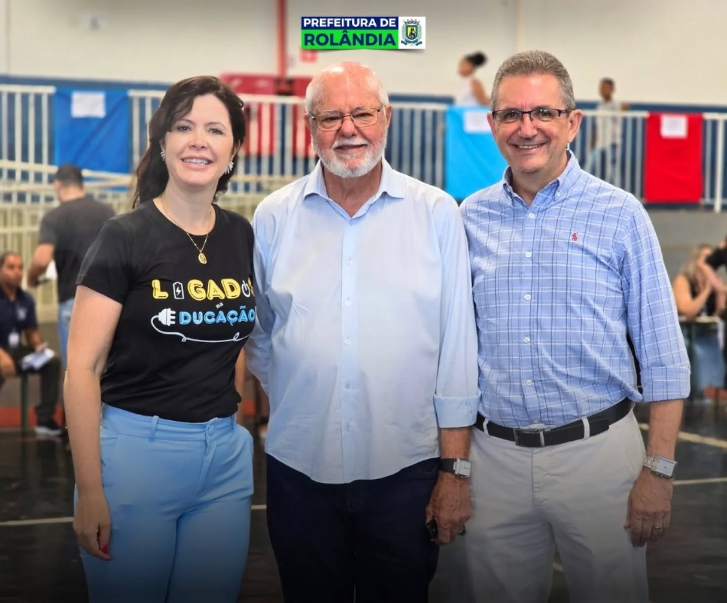 O prefeito Ailton Maistro, a primeira-dama Ana Maria Mungo Maistro, o vice-prefeito Horácio Negrão, a secretária de Educação Leise Moraes e os vereadores Gesiel Araújo e Rodrigão acompanham os trabalhos.