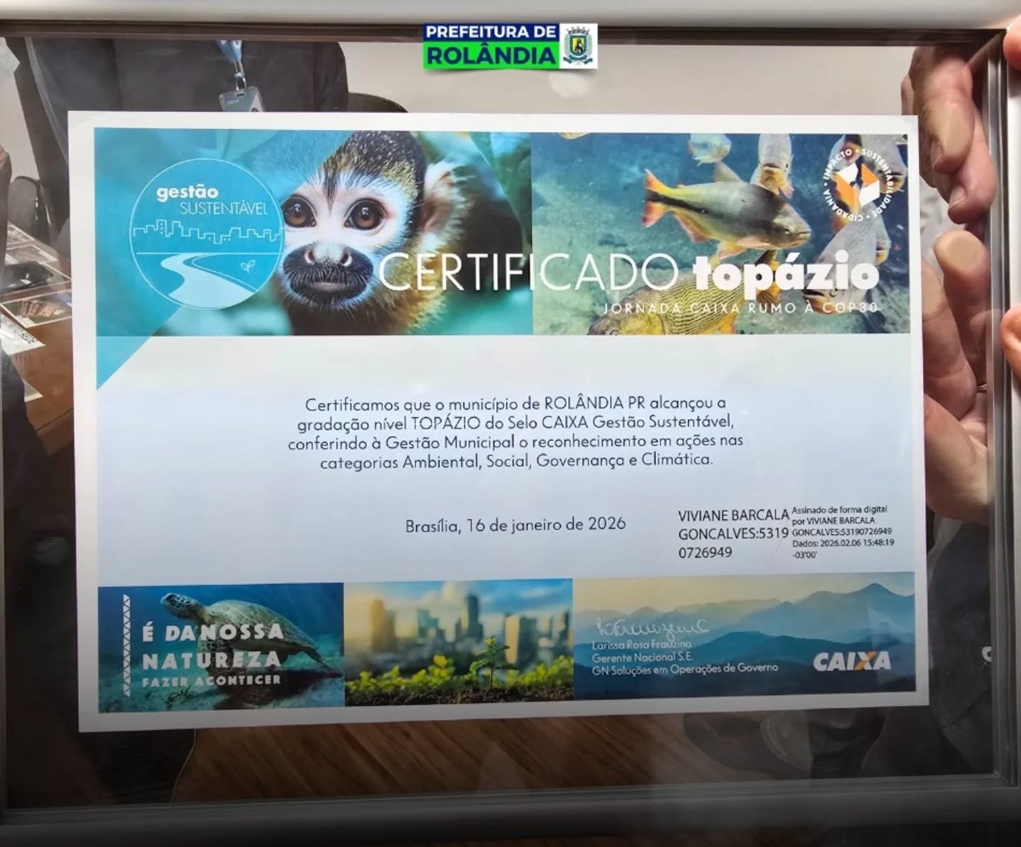 Rolândia é uma das primeiras cidades do Paraná contemplada com o “Selo CAIXA Gestão Sustentável”.