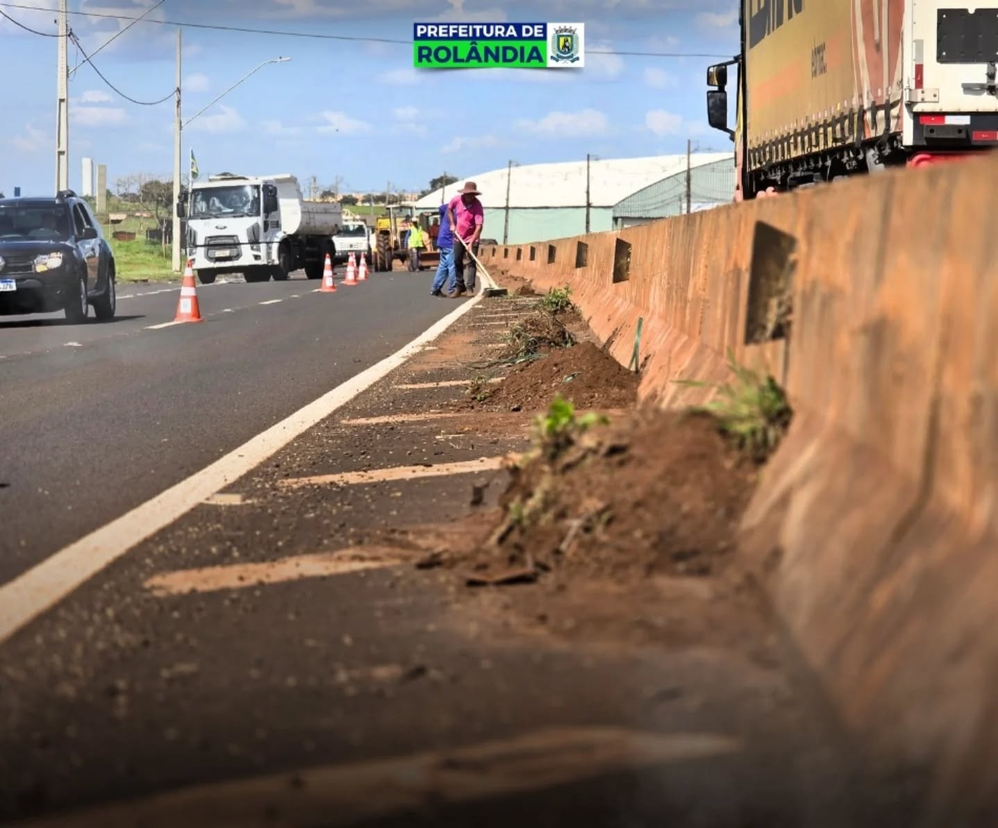 Equipes das Secretarias de Infraestrutura e de Serviços Públicos promovem um grande mutirão de limpeza, capina e roçagem nos canteiros e marginais da Avenida Presidente Getúlio Vargas, na região dos parques industriais.