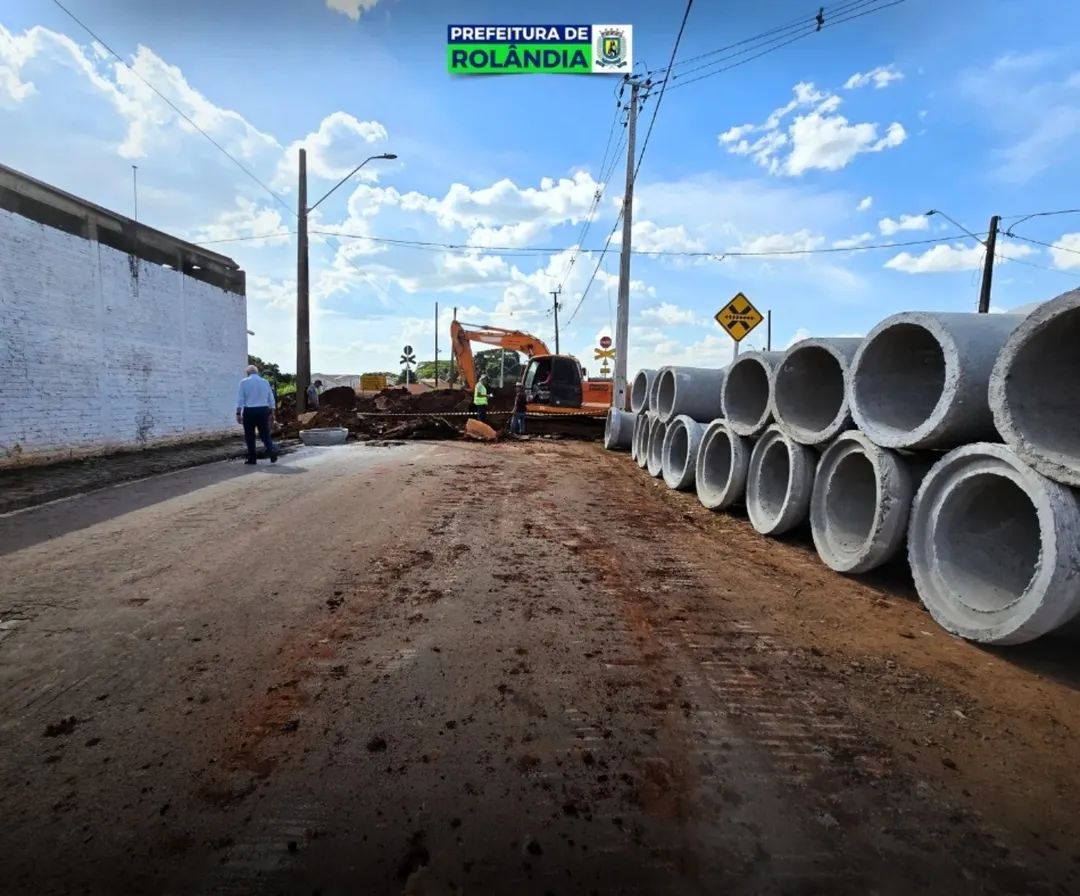 A intervenção começa com a implantação das galerias de águas pluviais, garantindo a adequada drenagem.