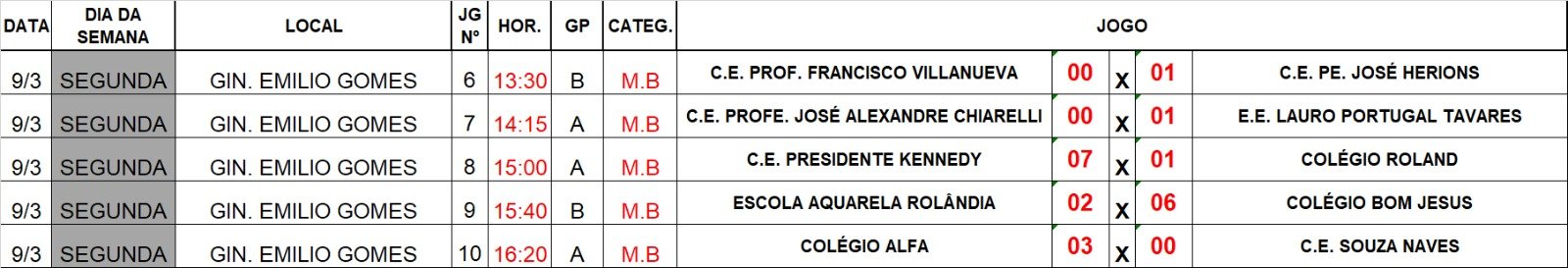 Confira também a tabela do voleibol e do basquete - também em anexo!