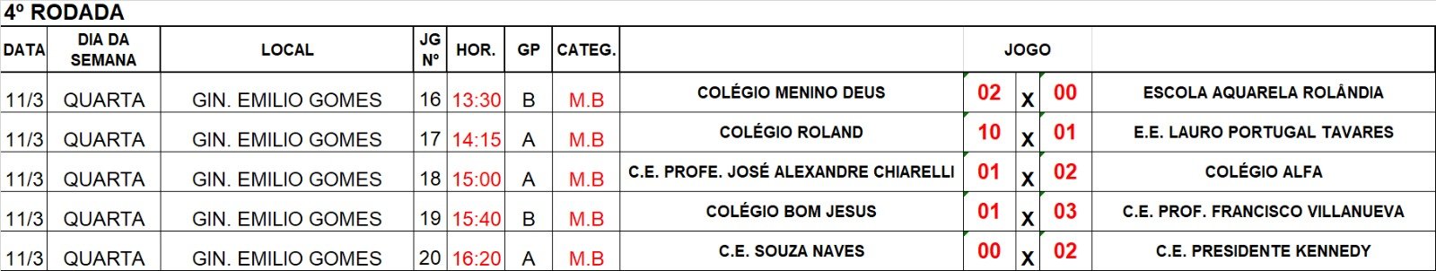 Confira o Boletim Oficial 4, com a tabela, classificação e os próximos compromissos - em anexo.
