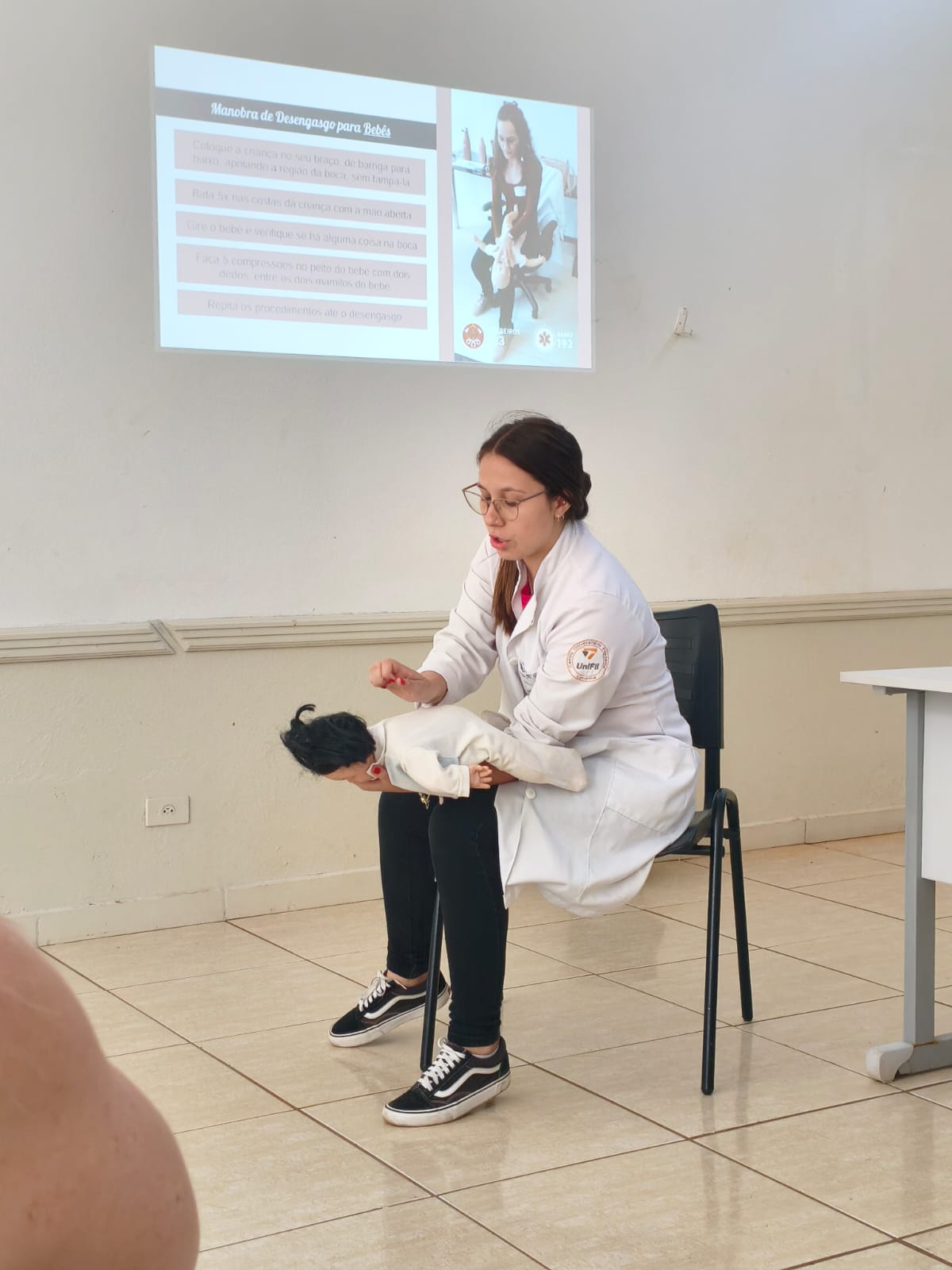 ❤️A estagiária de enfermagem Monique conduziu, de forma dinâmica, um bate-papo sobre primeiros socorros 🩺🚑, trazendo orientações importantes para o dia a dia.