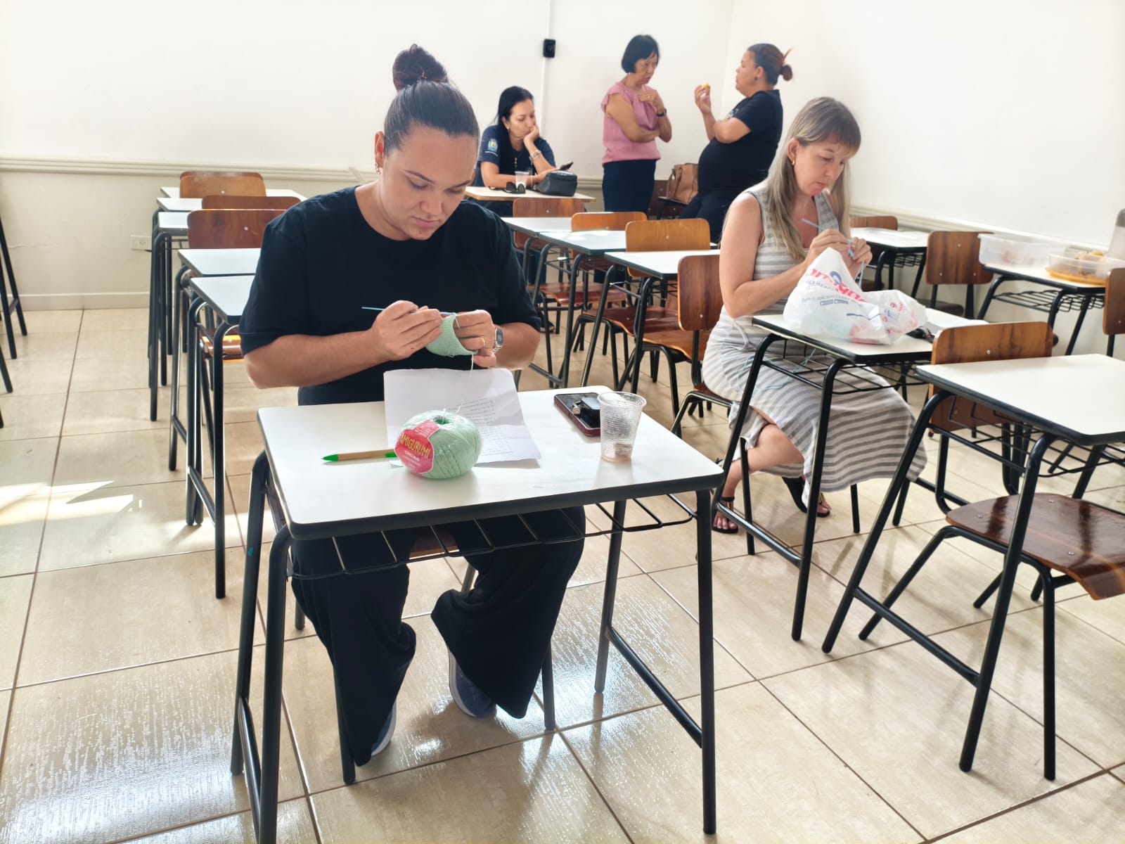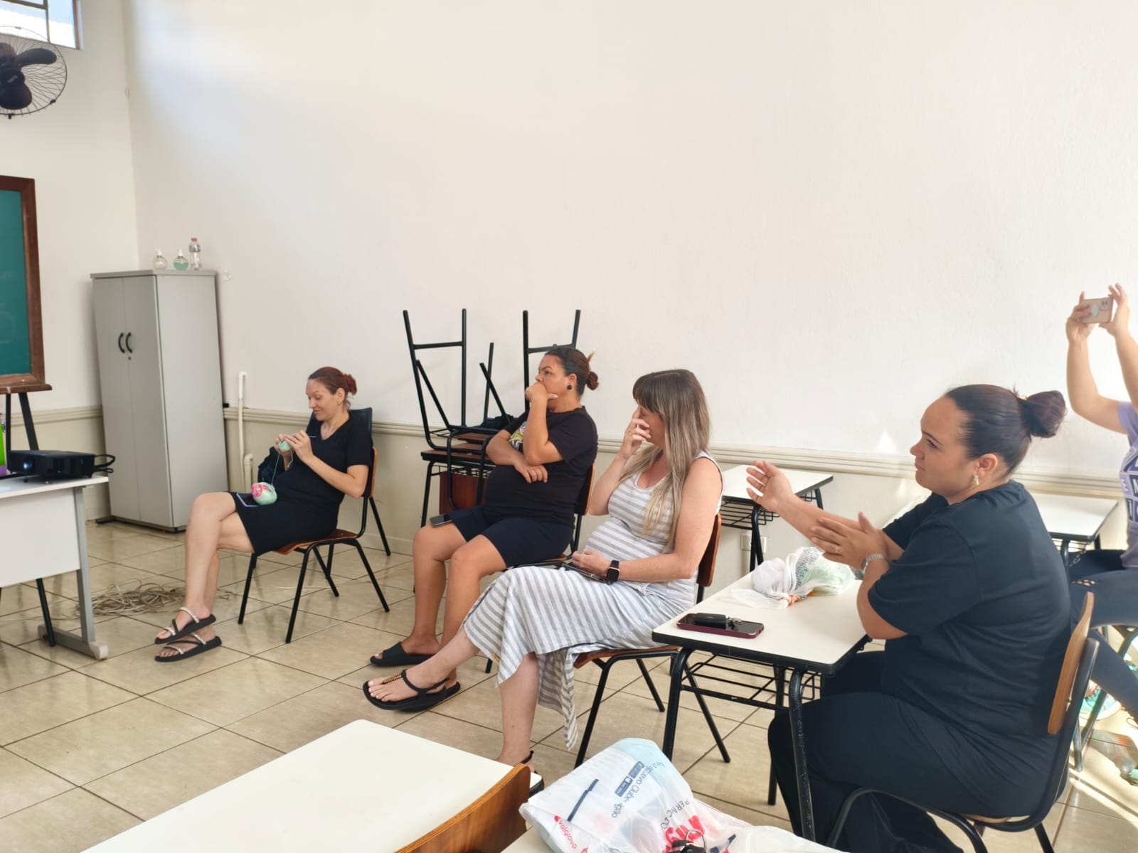 Após o momento de aprendizado, as ACSs Tathiany e Ana Caroline realizaram uma linda oficina de amigurumi 🧶, com o apoio da servidora Célia, proporcionando um momento de troca, criatividade e acolhimento entre as participantes.
