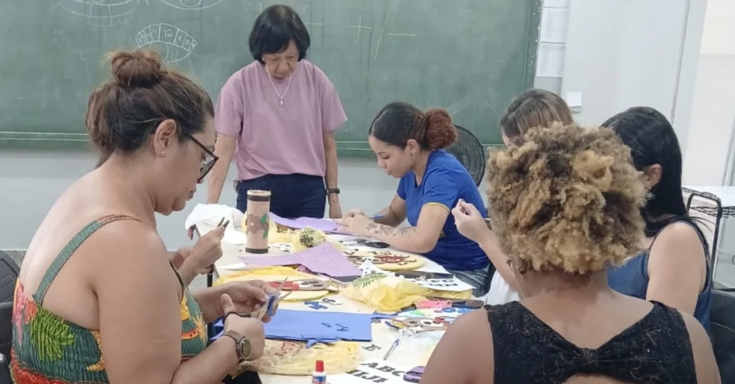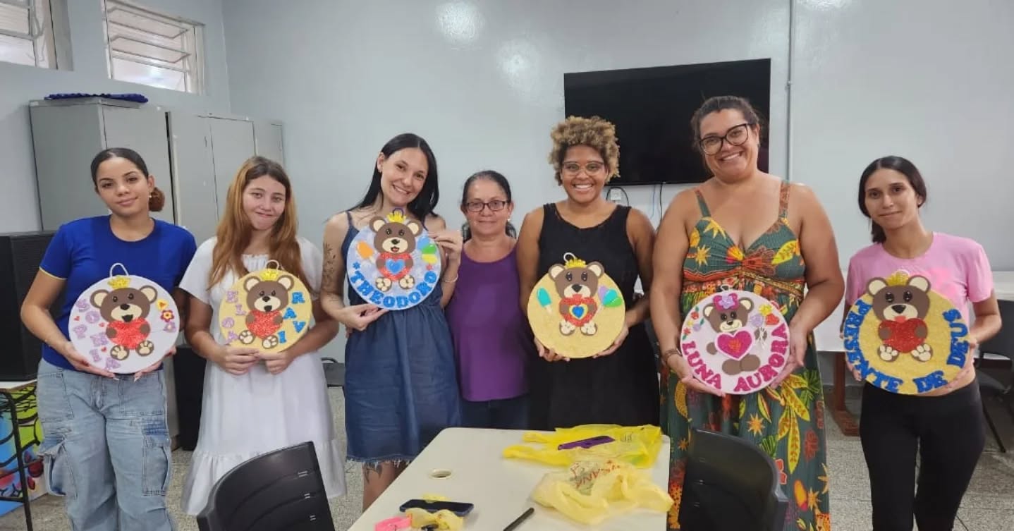 Para finalizar, a ACS Eunice e a apoiadora Célia realizaram uma linda oficina de porta-maternidade, cheia de criatividade e carinho