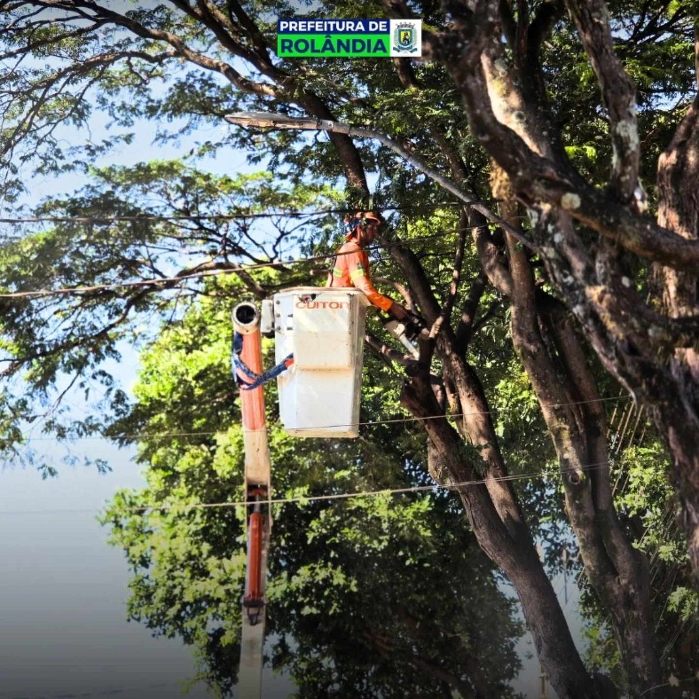 São diversos serviços em andamento, como a poda de levantamento. A atividade também garante mais qualidade à iluminação pública.
