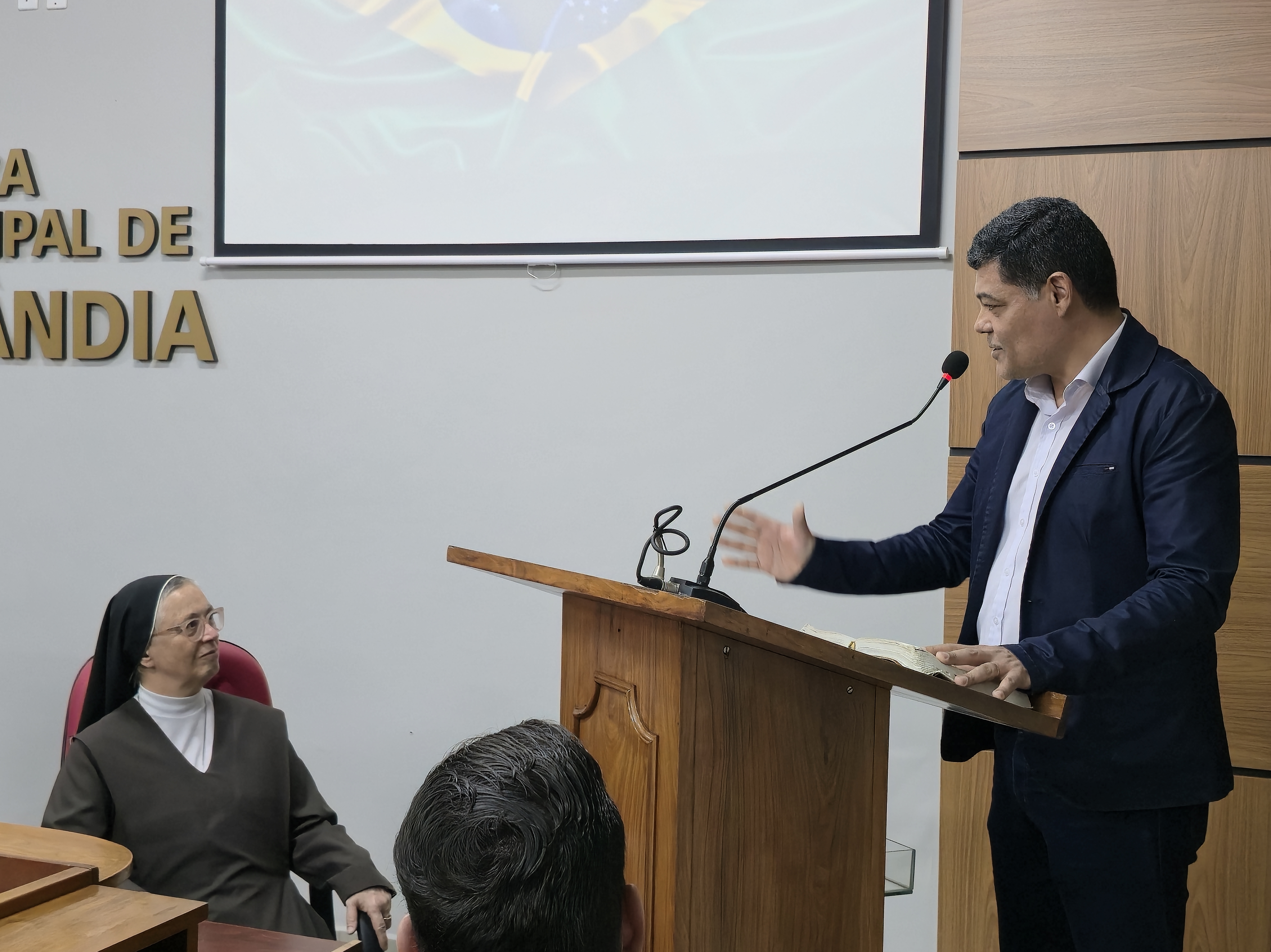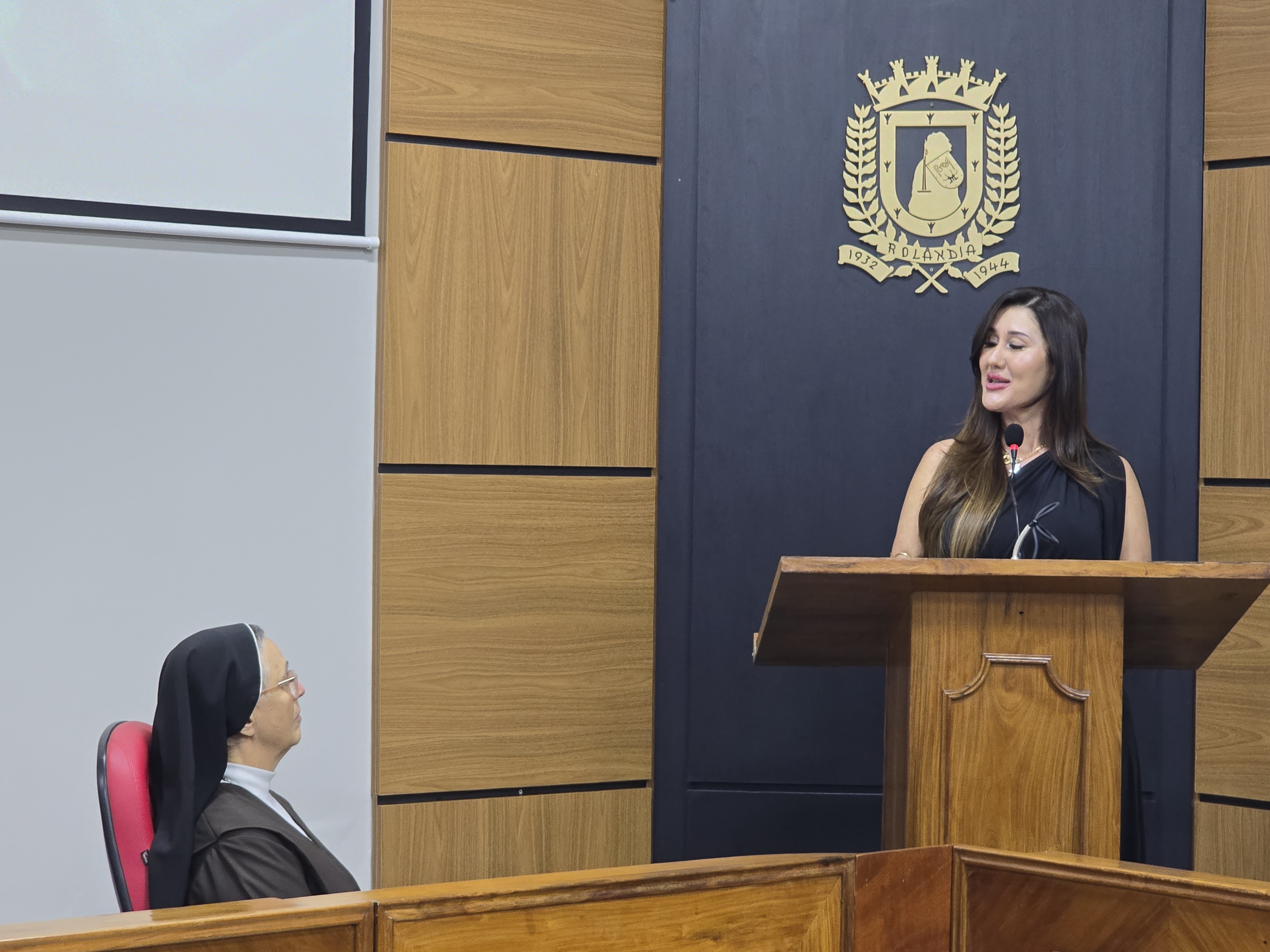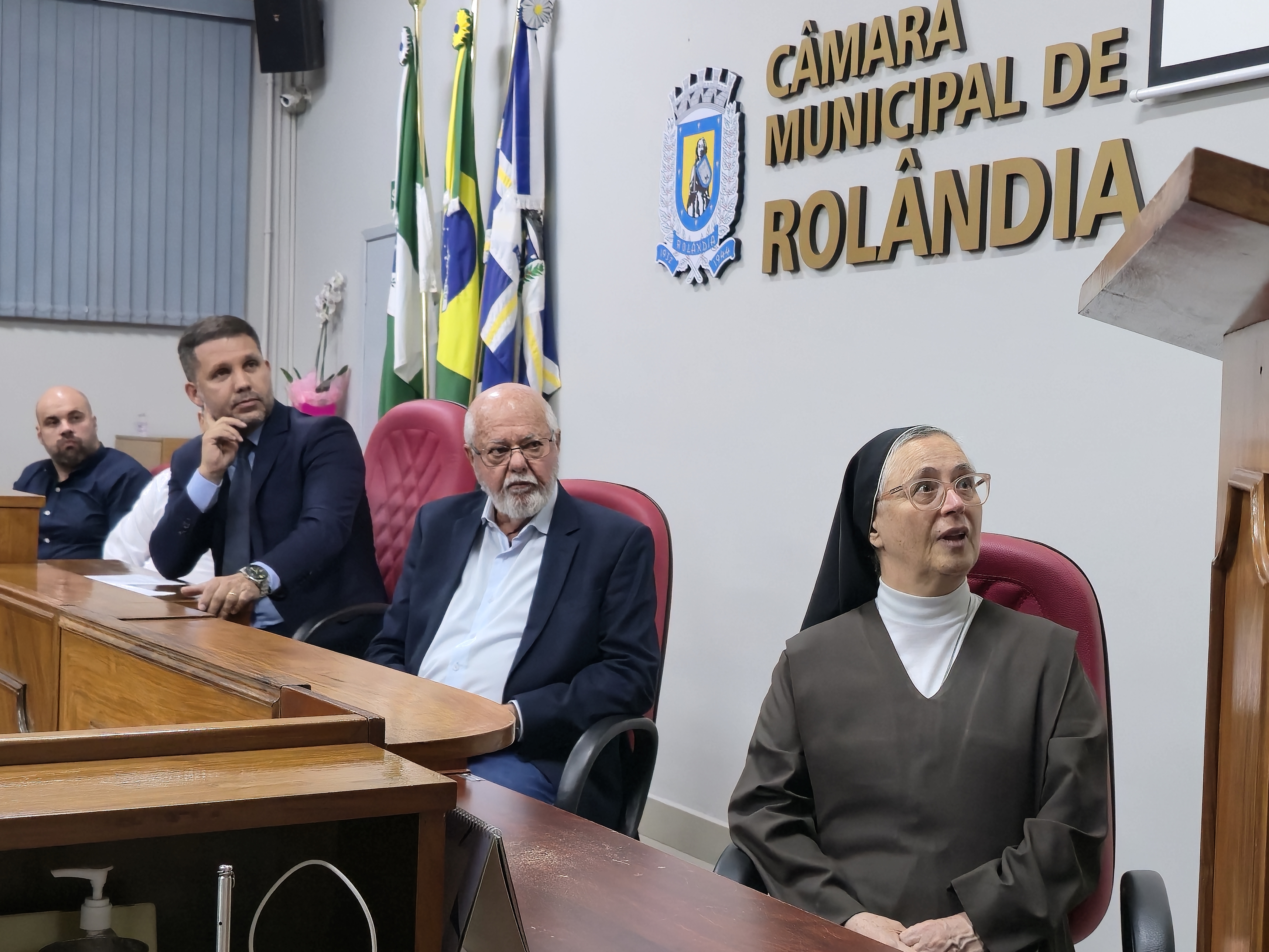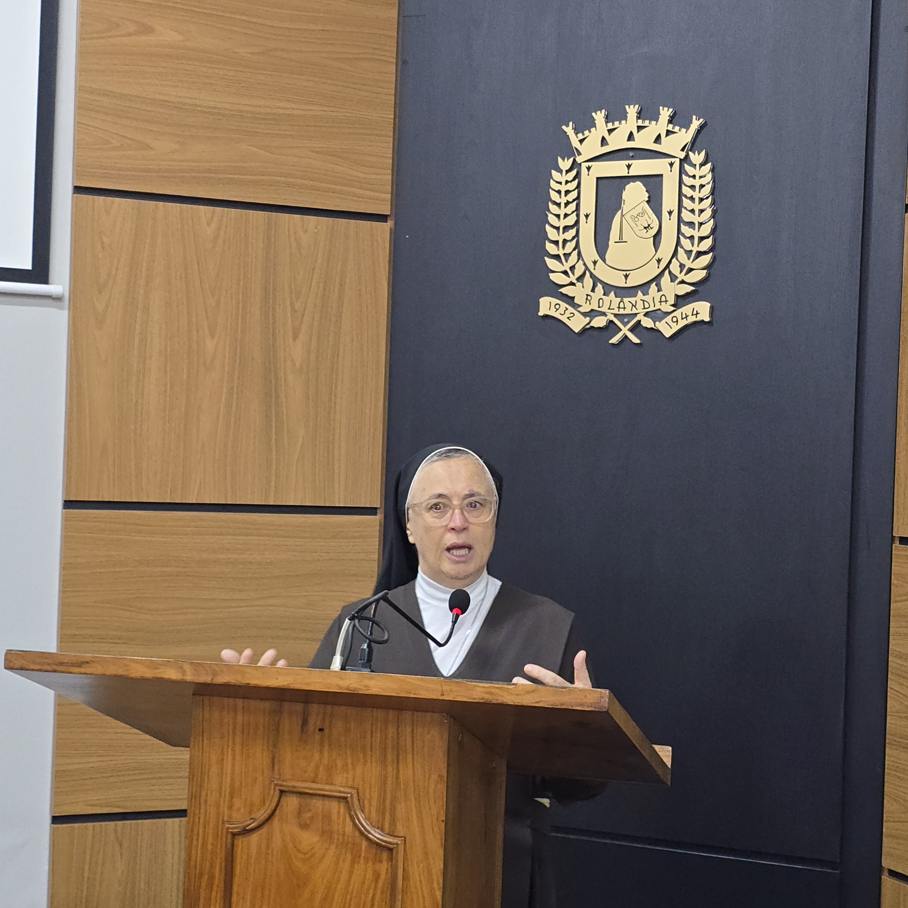 Em solenidade nesta quinta-feira, dia 23 de abril, na Câmara Municipal, a Irmã Elizabeth Mendes, gestora da Unidade Social Nossa Senhora Aparecida (USNSA), da Vila Oliveira, recebeu do deputado estadual Cobra Repórter uma “Menção Honrosa” aprovada pela Assembleia Legislativa do Paraná, em reconhecimento à sua trajetória de vida dedicada à fé, ao serviço comunitário e à promoção social.