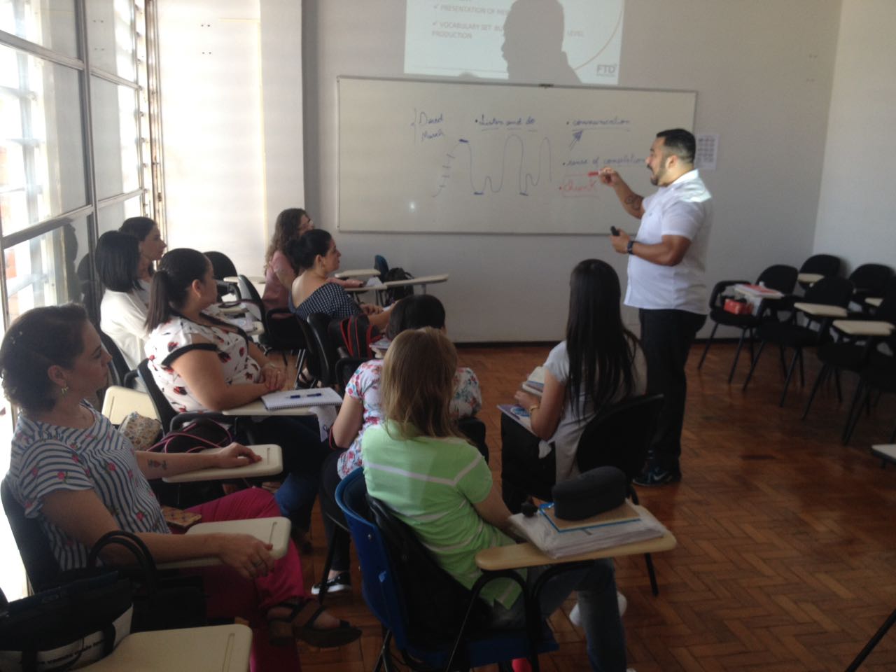 Os professores de língua inglesa da rede municipal de educação realizaram na sexta feira, dia quatro, uma formação com o coordenador pedagógico da Editora FTD, fornecedora dos livros didáticos da rede. Esse foi o primeiro de quatro enco...