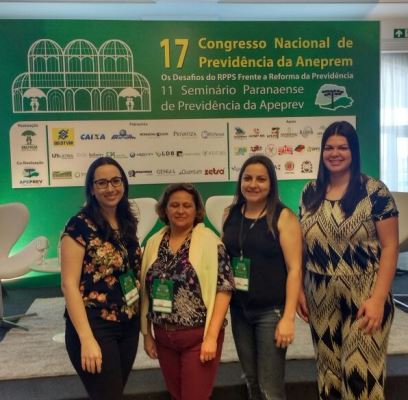 A Diretora Executiva do Rolândia Previdência, Eluiza Messiano e Janaína Coscrato, a representante do Conselho Municipal de Previdência, Cláudia Venancio e a representante do Comitê de Investimentos Marianne Baudraz participaram em Curiti...