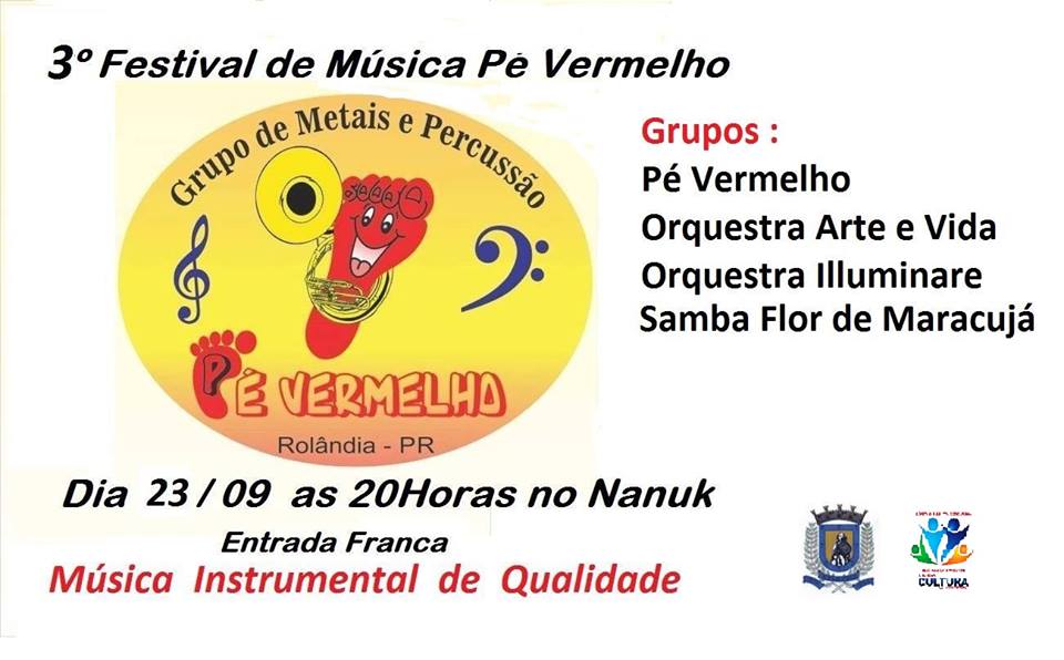 A Secretaria de Cultura e Turismo apoia o 3º Festival de Música Pé Vermelho. ...