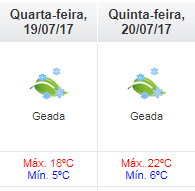 O Sistema Metereológico do Paraná (SIMEPAR) informa a Secretaria de Agricultura e Meio Ambiente que existe a possibilidade de ocorrerem geadas fracas nas madrugadas de terça para quarta (19) e quarta para quinta (20) na cidade, com as temperatur...