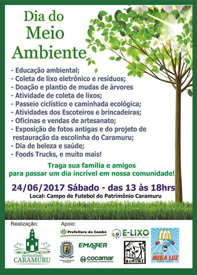 No sábado (24), no Patrimônio Caramuru, no campo de futebol, haverá um evento que celebra o “Dia do Meio Ambiente”. A Secretaria de Cultura e Turismo apoia a ação....