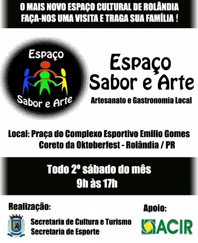 Neste sábado, dia 13 de maio, a Secretaria de Cultura e Turismo promove mais uma edição do "Espaço Sabor e Arte", um local destinado à venda de artesanato e produtos gastronômicos do Município de Rolândia. A feira acontece no...
