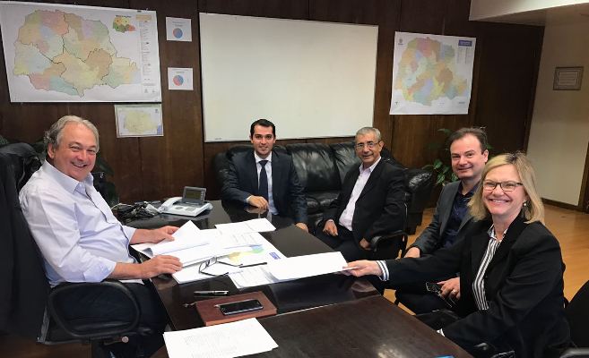 O Prefeito Dr. Francisconi, o Vice-Prefeito Roberto Negrão e os Vereadores Maria do Carmo e Irineu de Paula estiveram reunidos em Curitiba, com o Superintendente de Desenvolvimento Educacional, da Secretaria Estadual de Educação, Victor Hug...