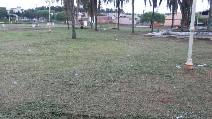 A Secretaria de Serviços Públicos promoveu a limpeza e a roçagem da área institucional de Praça no Jardim Roland Garten....