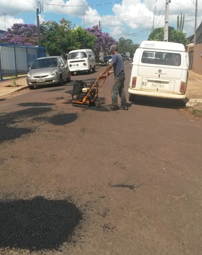 A Secretaria de Infraestrutura promoveu o serviço de tapa buraco na Rua Alice Rocha, no Jardim Santiago....