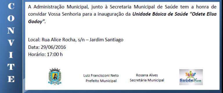 A Secretaria de Saúde informa que está adiada a inauguração da Unidade Básica de Saúde (UBS) do Santiago, anteriormente marcada para esta quarta-feira, 29 de junho. Como a obra não está 100% pronta devido ao atraso de alguns fornecedores em...