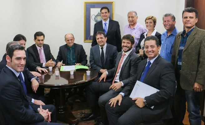 O Prefeito Dr. Francisconi, o Secretário de Agricultura e Meio Ambiente Paulo Gripp, o Secretário de Planejamento e Desenvolvimento Econômico Dario Campiolo, o Secretário de Infraestrutura Wanderlei Massucci e o Chefe de Gabinete Diego Silva es...