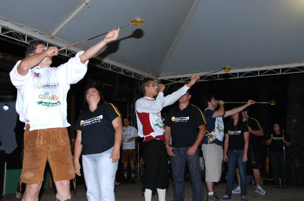 O equipamento utilizado na disputa são as tulipas de vidro de um metro de comprimento cada, nas quais cabem 600 ml de chopp. O coordenador da equipe, Rodrigo Chiaratti, conta que o melhor tempo já obtido é de 12 segundos. “É muito difícil a...