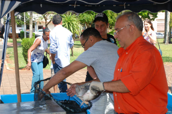 Naquela ocasião, a Feira do Peixe Vivo comercializou 200 quilos, vendidos a R$ 9,00 cada. O evento contou com o trabalho gratuito dos produtores rurais da região e 50% do lucro foram destinados à Associação dos Voluntários e Voluntárias de C...