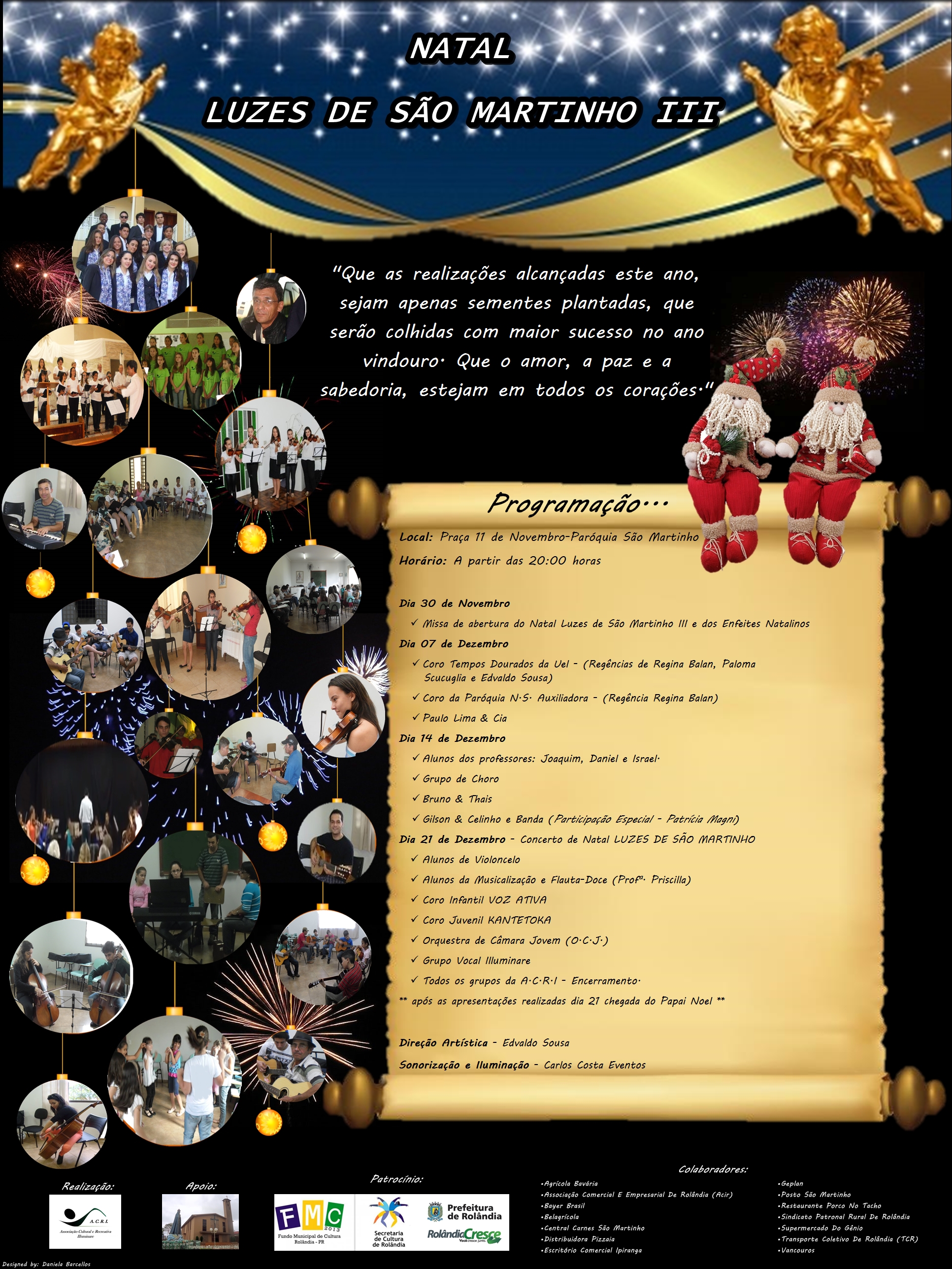 A chegada do Papai Noel este ano também será especial. O prefeito de Rolândia entregará a chave da cidade a ele. O início da programação natalina também contará com apresentação do Auto de Natal, apresentações de grupos, danças fe...