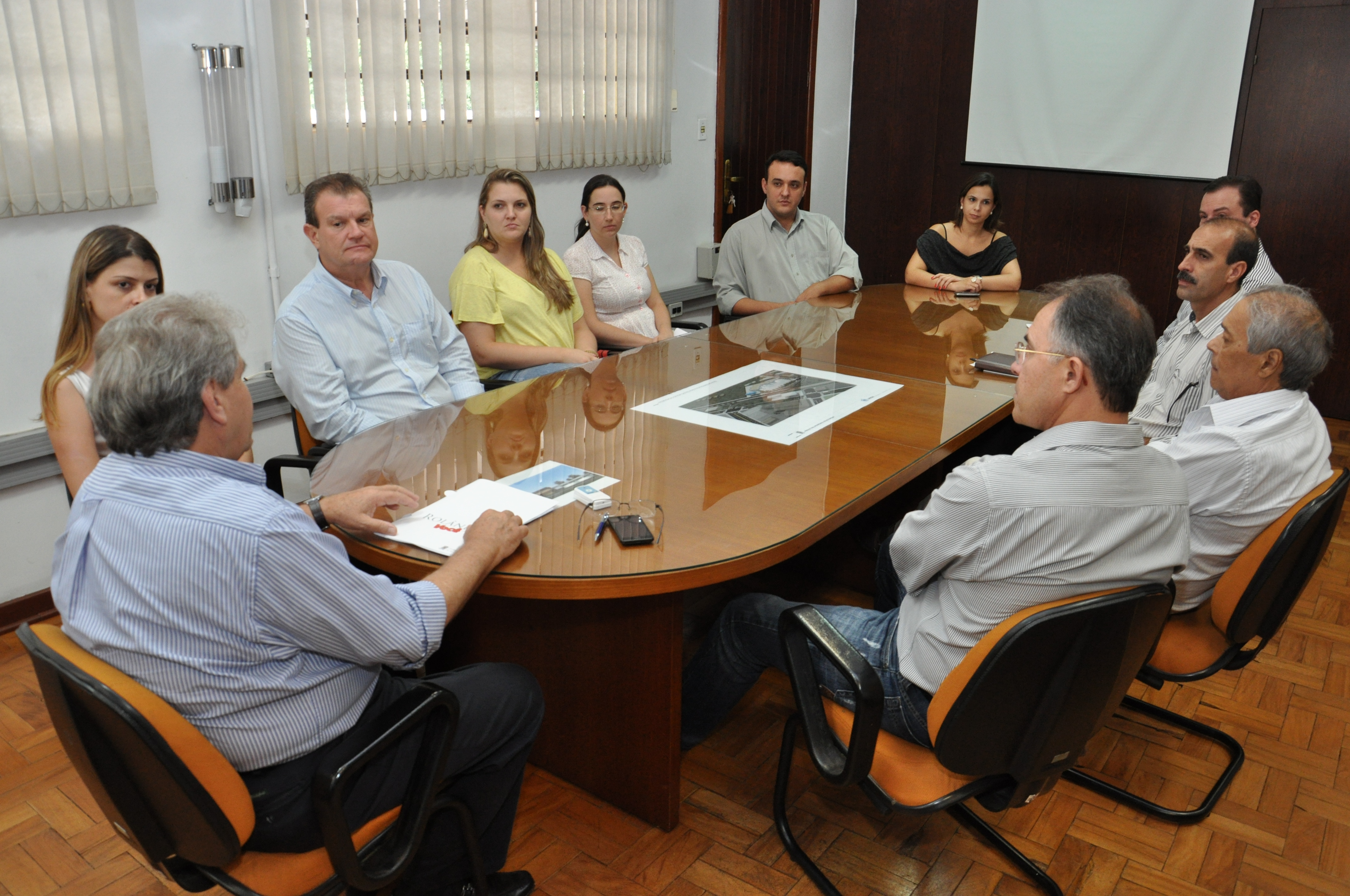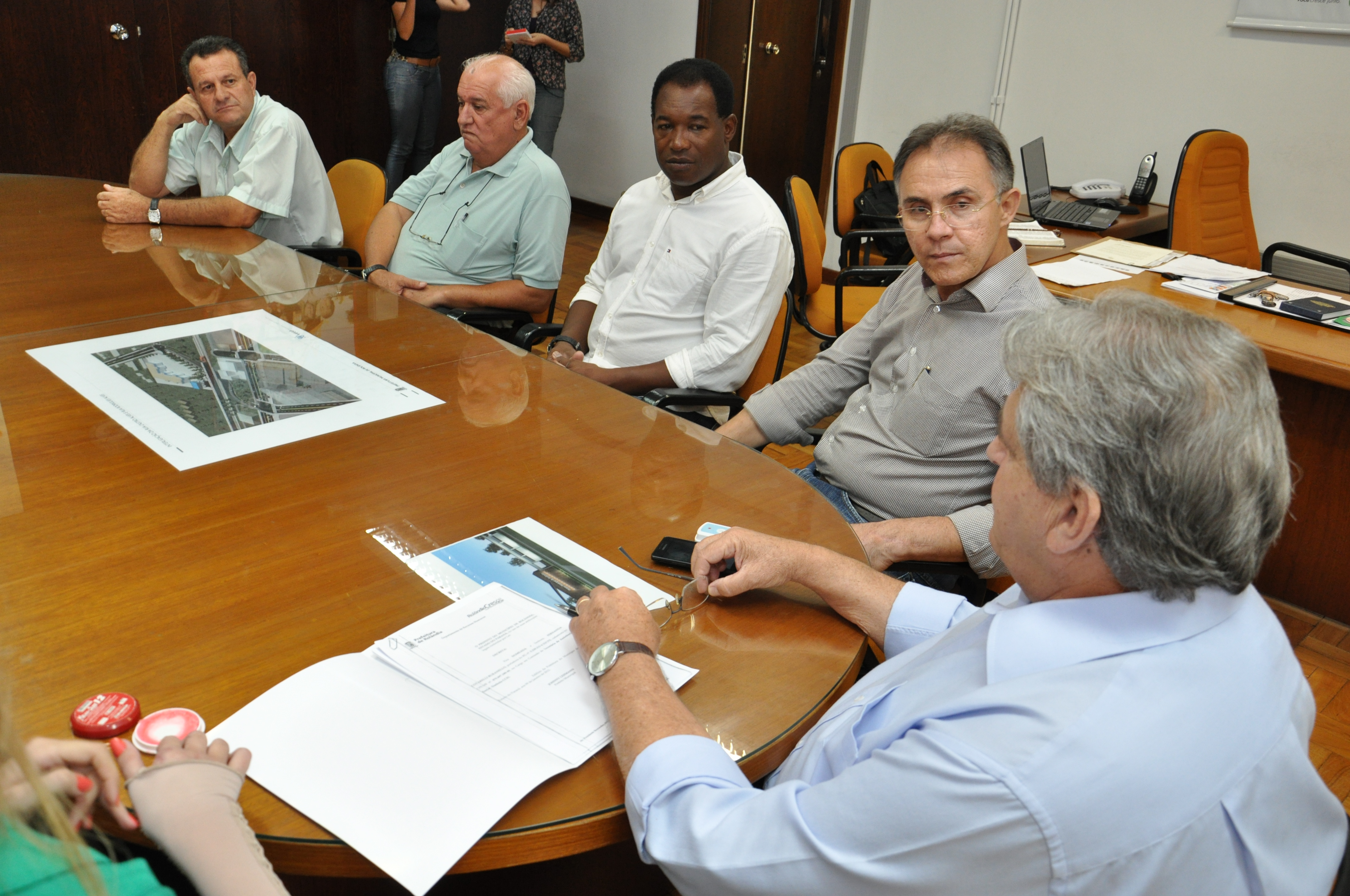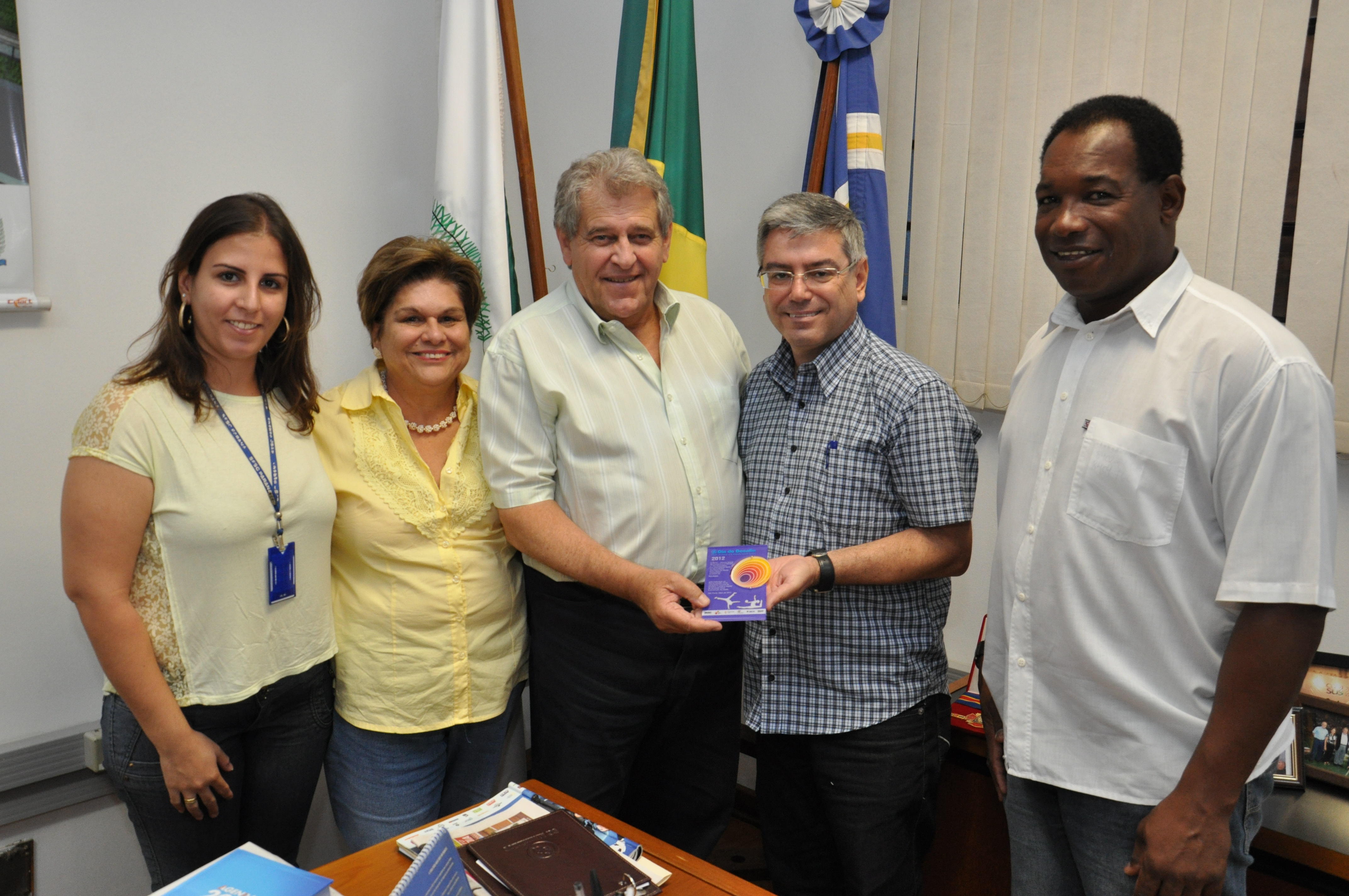 O Gerente Executivo do SESC Gilberto Mensato e a Técnica de Atividades Letícia Brussolo, reunidos com a Secretária de Cultura Maria Luiza Muller e o Secretário de Esportes Dirceu de Mattos entregaram para o Prefeito, o troféu do Dia do...