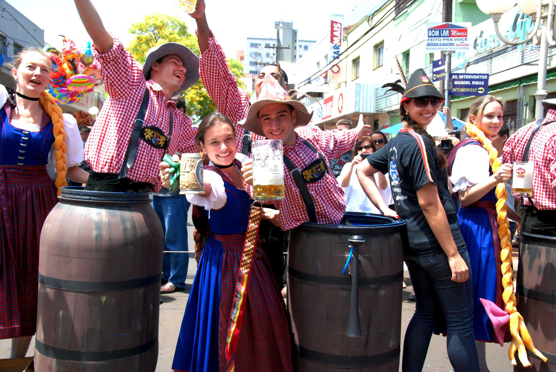 Além do restaurante com pratos típicos, a gastronomia era encontrada no Café Colonial com doces e tortas alemãs e na Casa da Salsicha, novidade no evento. Além do chopp, cervejas gastronômicas podiam ser degustadas na Tenda da Cerveja, outro ...