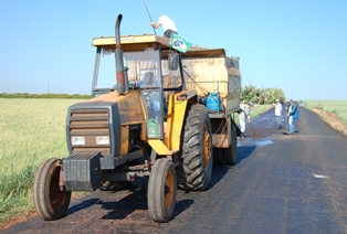 A recuperação do trecho mais crítico da estrada está sendo realizado com lama asfáltica. São aproximadamente R$ 20 mil reais de investimento no recape realizado com recursos próprios da Prefeitura de Rolândia. Acompanhado do vereador P...