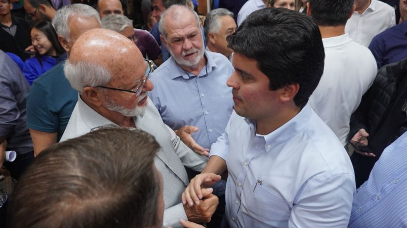 O prefeito Ailton Maistro, o vice-prefeito Márcio Vinícius, a secretária de Educação, Leise Camargo, a secretária de Assistência Social, Michele Pereira, o presidente da Câmara, Reginaldo Silva e ...