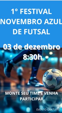 Finalizando as ações do Novembro Azul relacionadas ao cuidado da saúde do homem, a Secretaria de Saúde em parceria com a Secretaria do Esporte convida a todos os nossos homens e familiares a participarem do "1° FESTIVA...