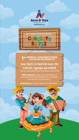 A secretaria de Cultura e Turismo convida a todos para realizado o "4⁰ CONCERTO NA ROÇA: O CONCERTO DA PAZ", do grupo "Mutirão Bão", grupo Pé Vermelho e Associação do km 10. O evento acontecerá...