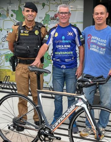 O técnico da equipe de Ciclismo, da secretaria de Esportes, José Ricardo Moraes, recebeu das mãos do comandante do 5º Batalhão da Polícia Militar de Londrina, Tenente-coronel Marcos Tordoro ...