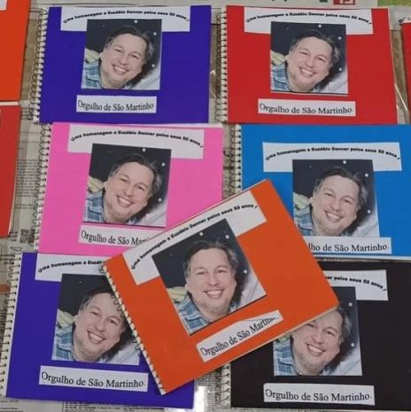 Alunos da escola municipal Luiz Real, do distrito de São Martinho, fizeram uma linda homenagem ao artista local Euzébio Denner, renomado pintor, que completou 50 anos na semana passada. A professora Eliane Festi escreveu um livro com a...